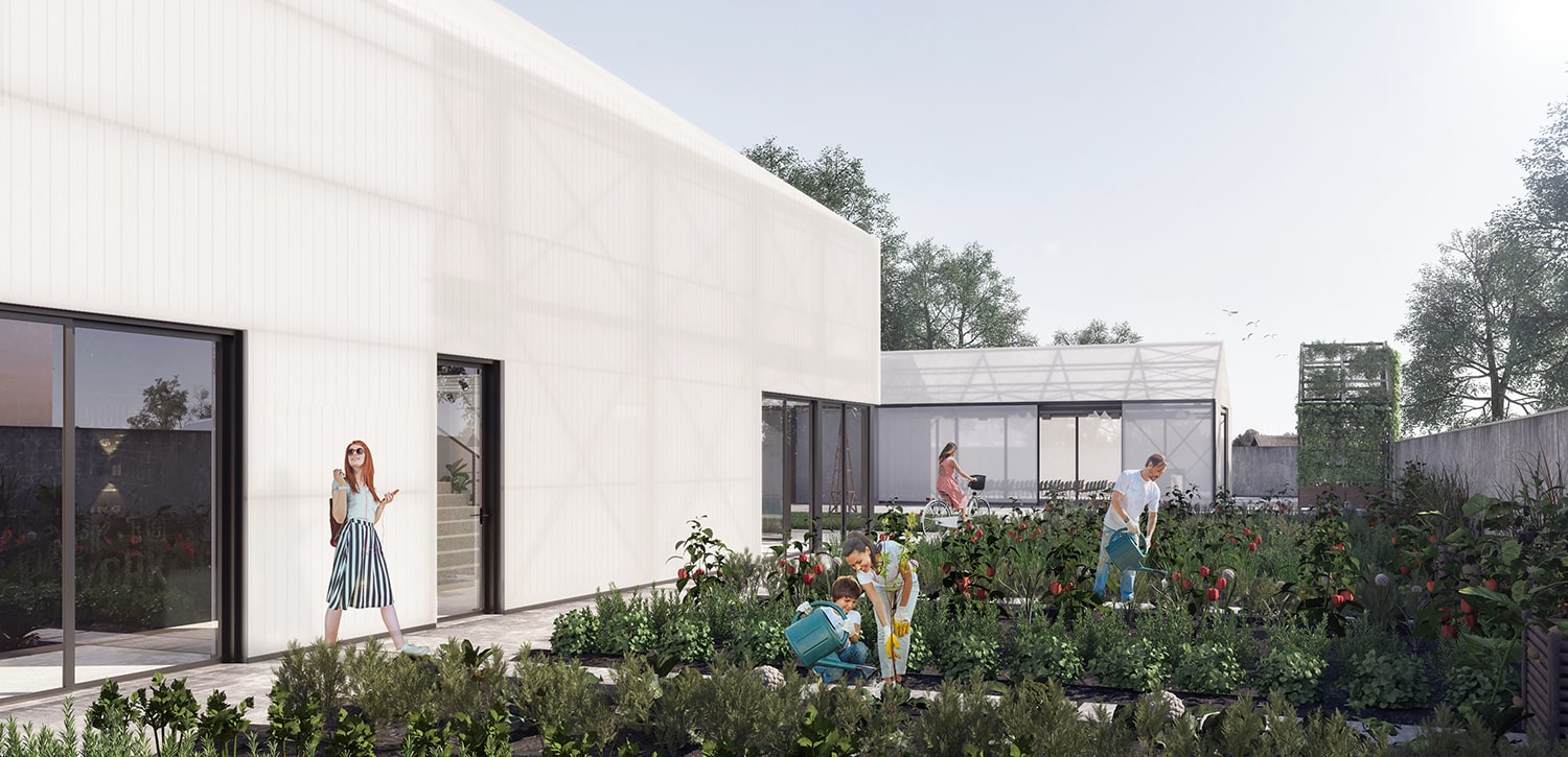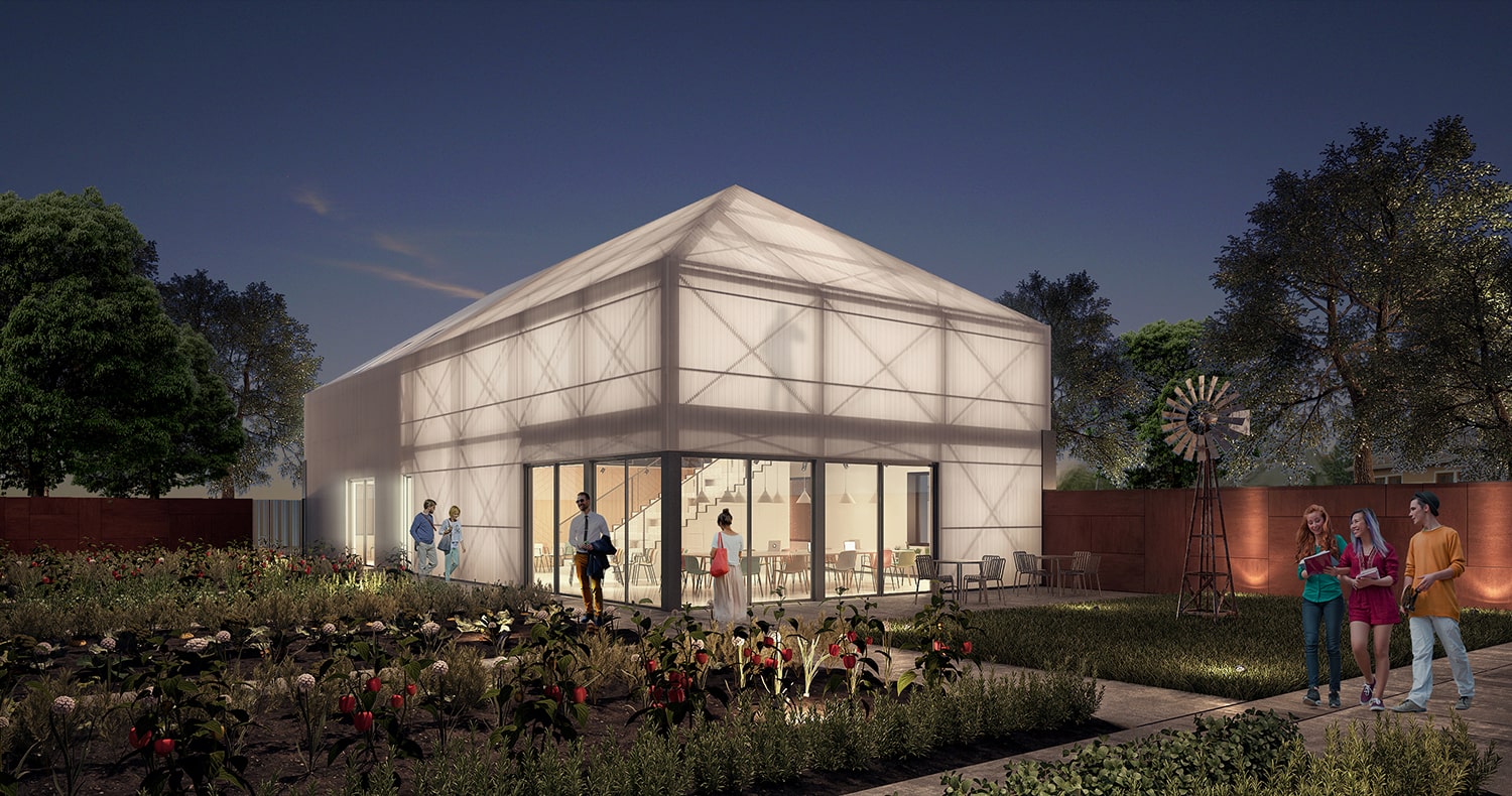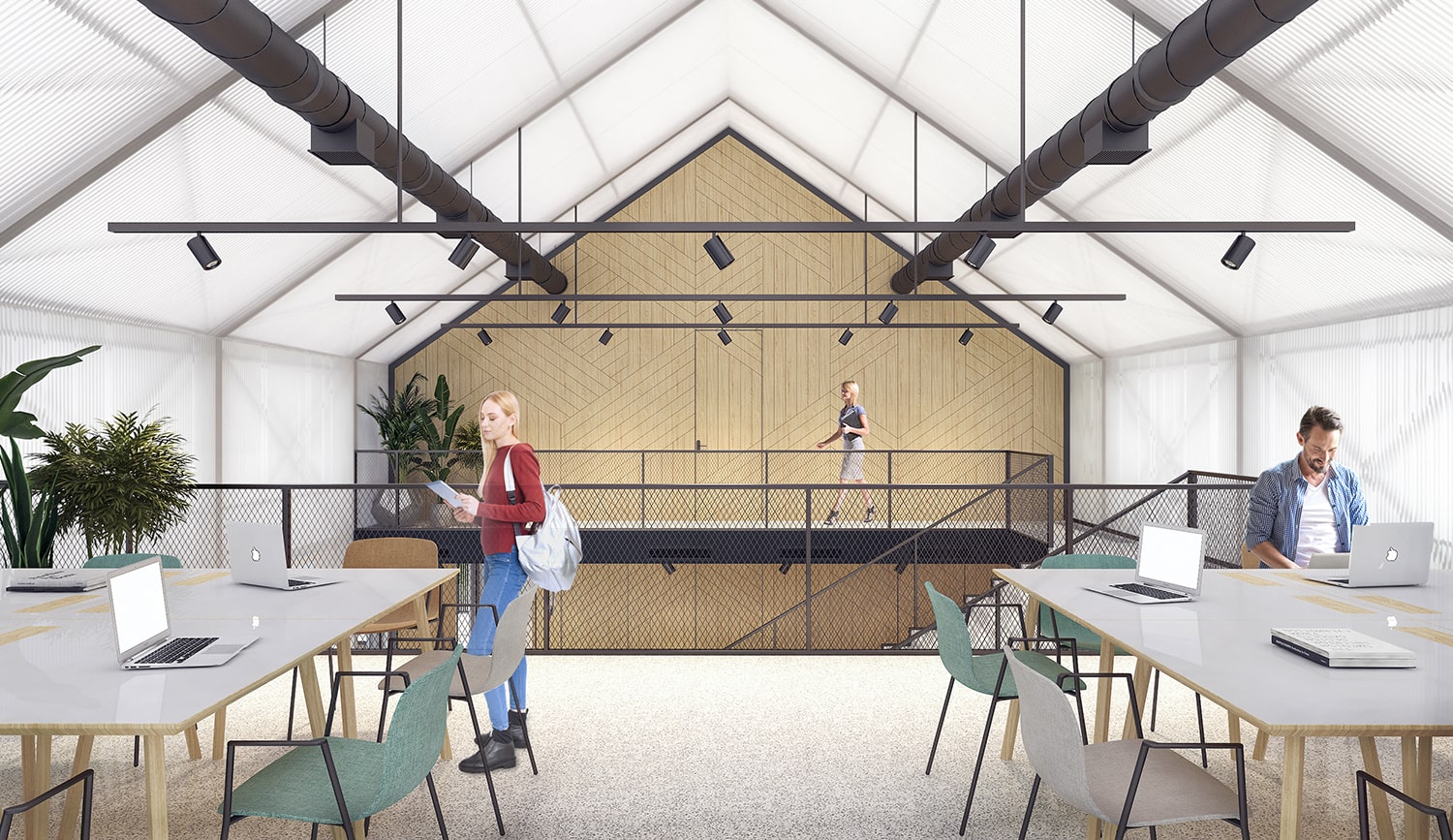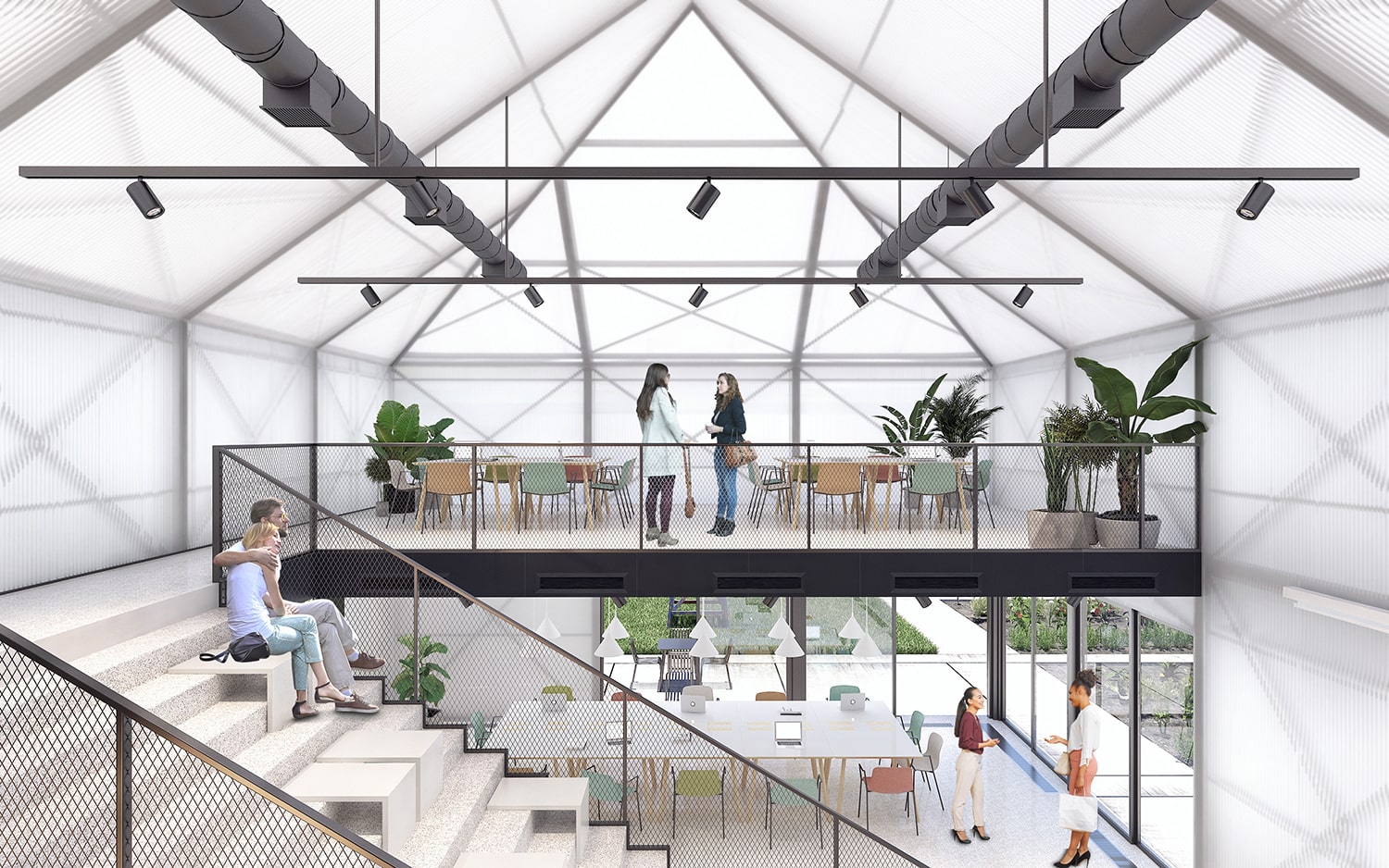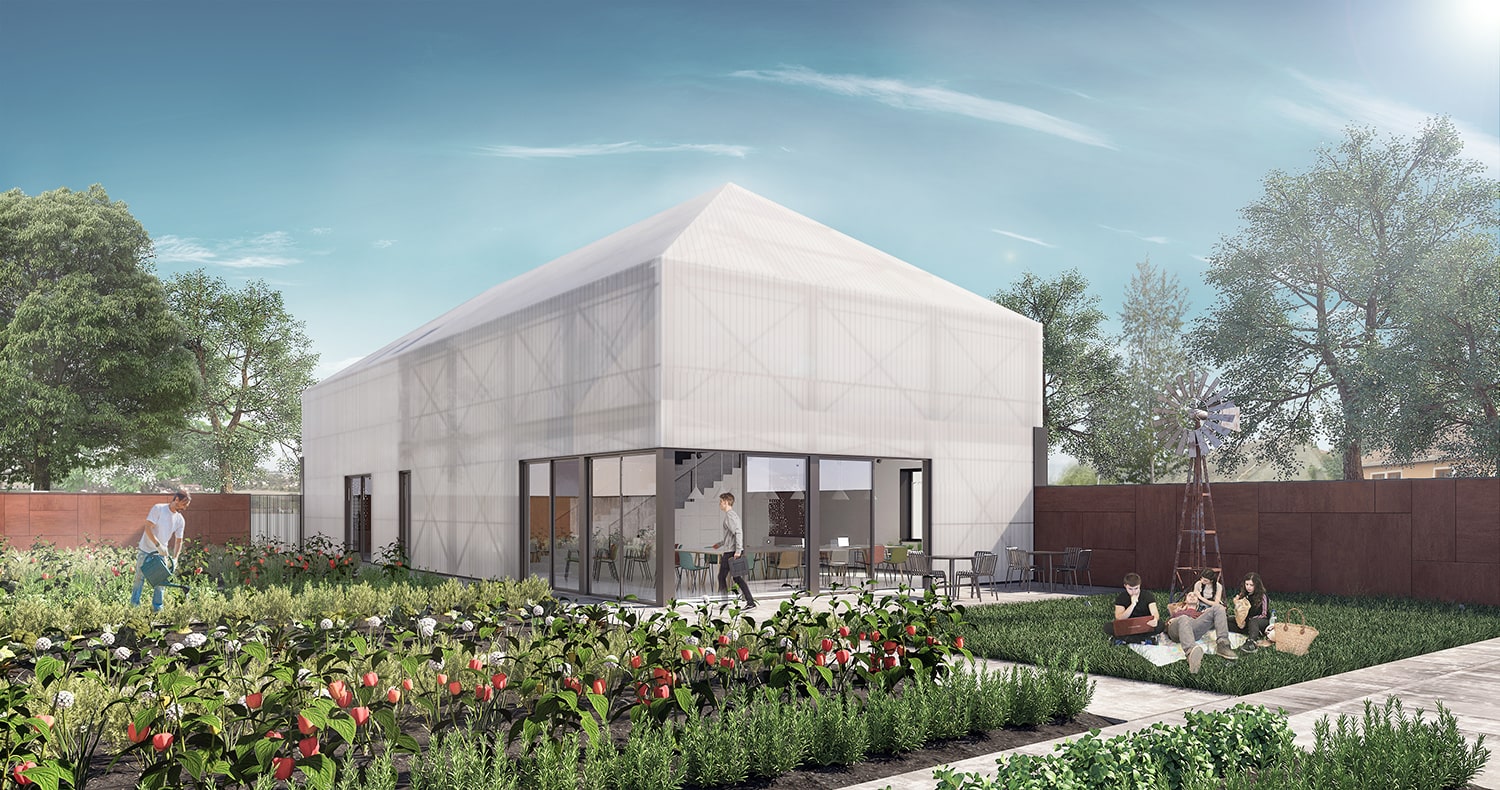A multifunctional complex located in the heart of a plain is created as a co-working and co-living space for digital nomads. It operates on sustainable energy and involves local farmers in organic food production on site.
