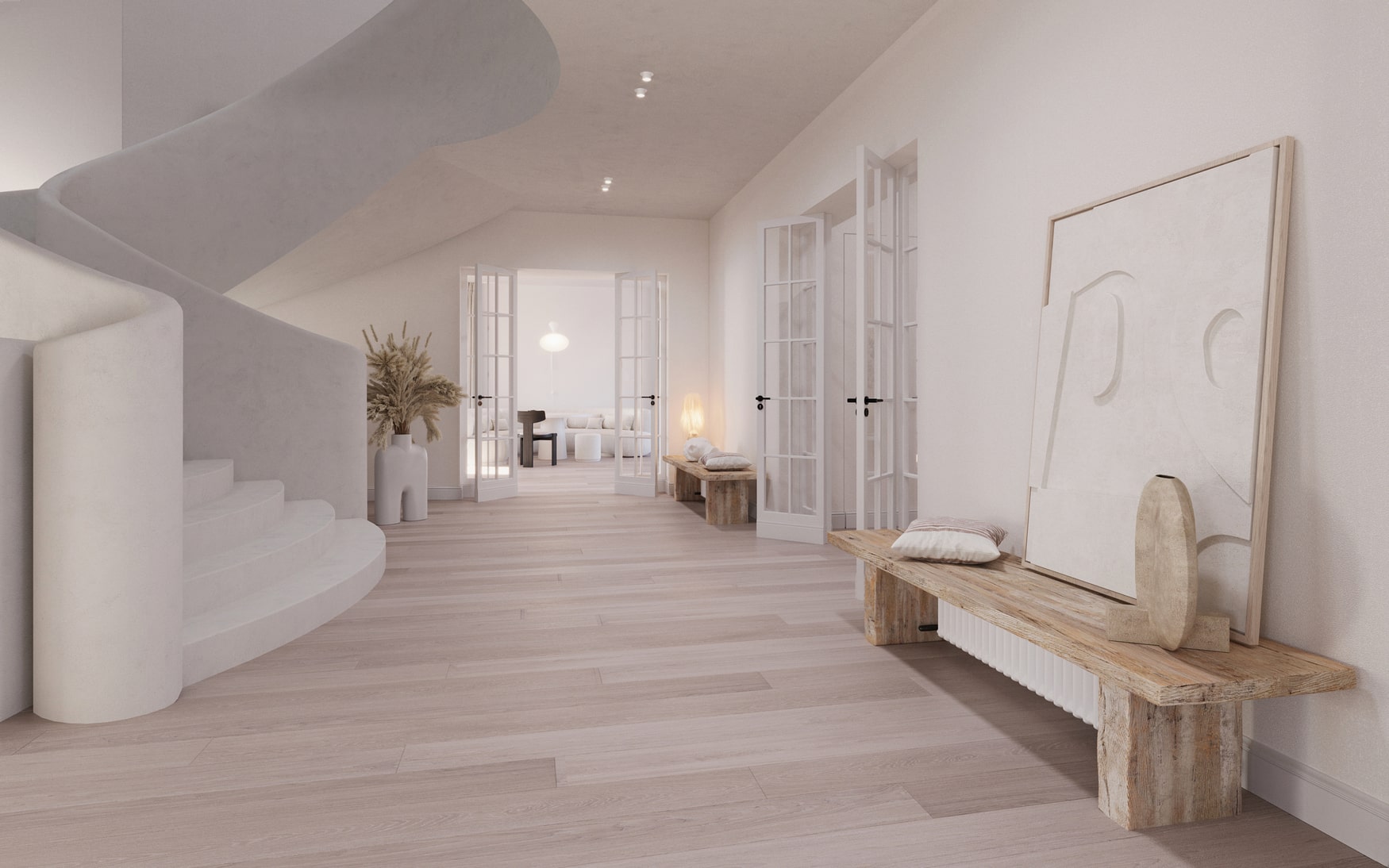 Located in the heart of suburbia, a once character-rich villa has undergone a remarkable transformation, preserving its original architectural charm while embracing a sleek and minimalistic interior. The result is a warm and inviting haven for a growing family, seamlessly blending modern aesthetics with the timeless appeal of the past.
