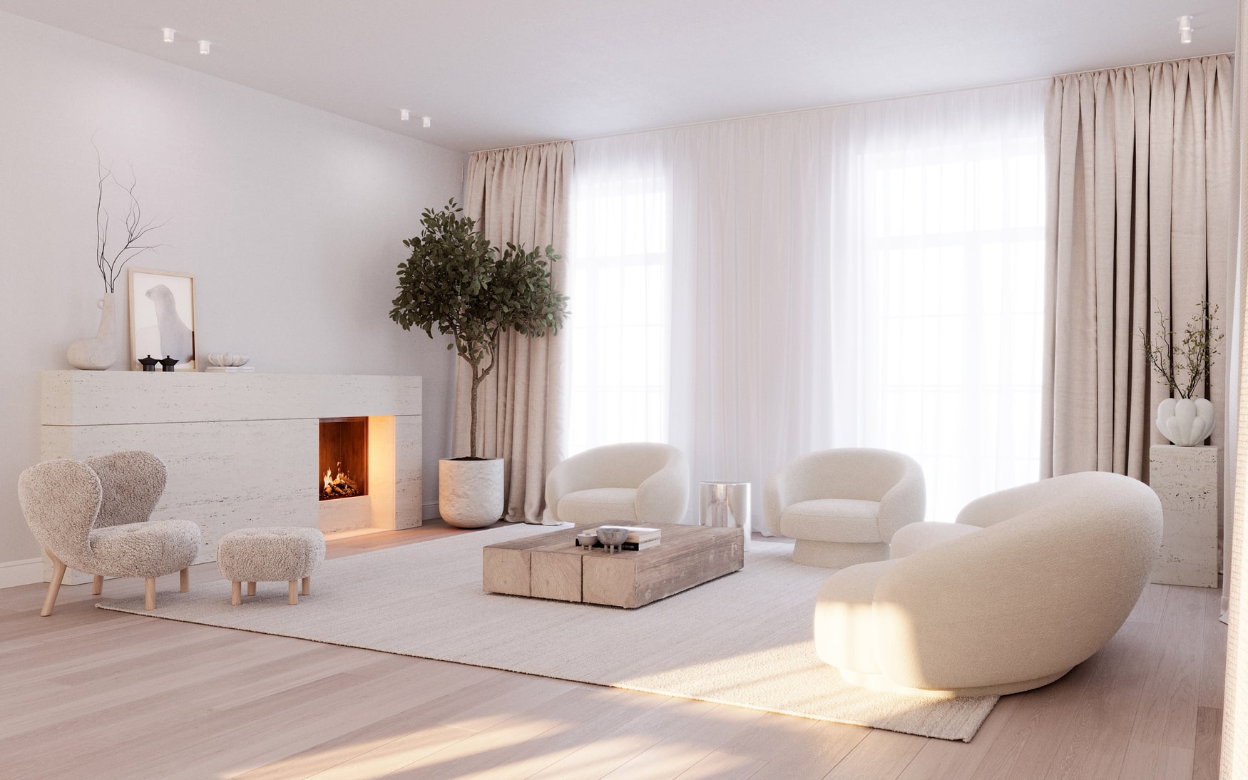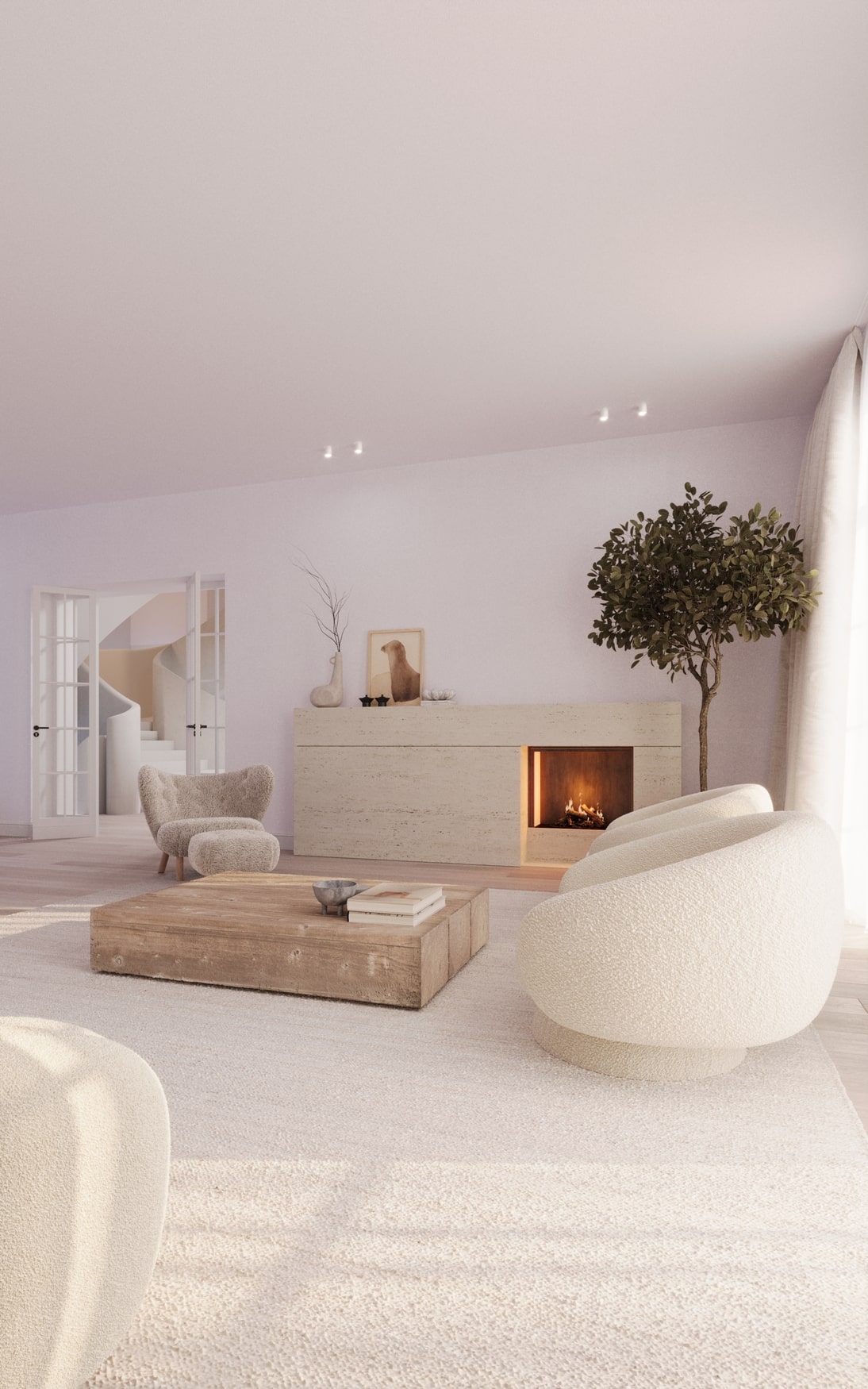 On the ground floor, a harmonious fusion of living, kitchen and dining spaces unfolds. The new spatial organization eradicated the old configuration, bringing forth an extravagant open-concept area. The living room features two distinct ambiences – a laid-back corner sofa for casual TV watching and a more formal setting next to the fireplace.