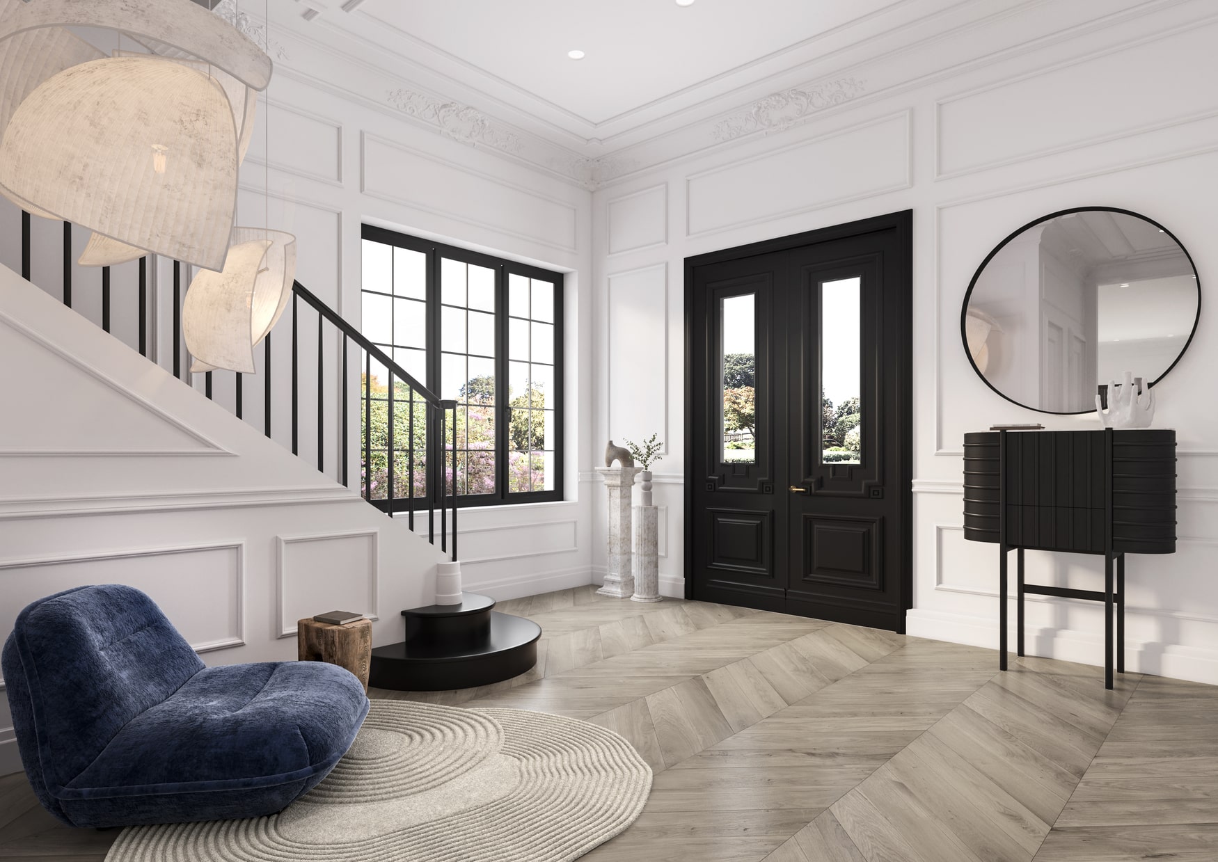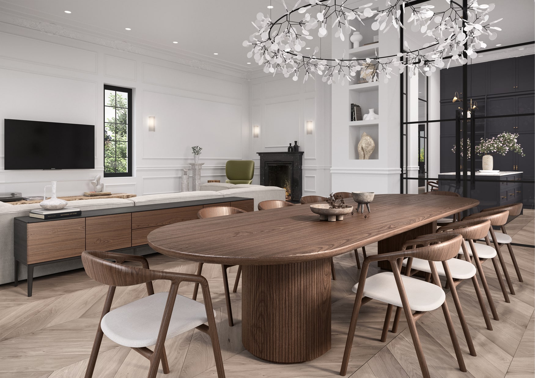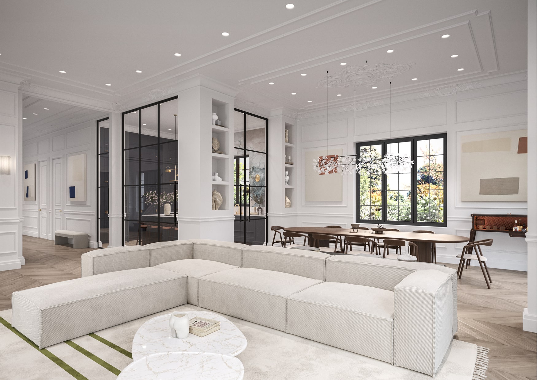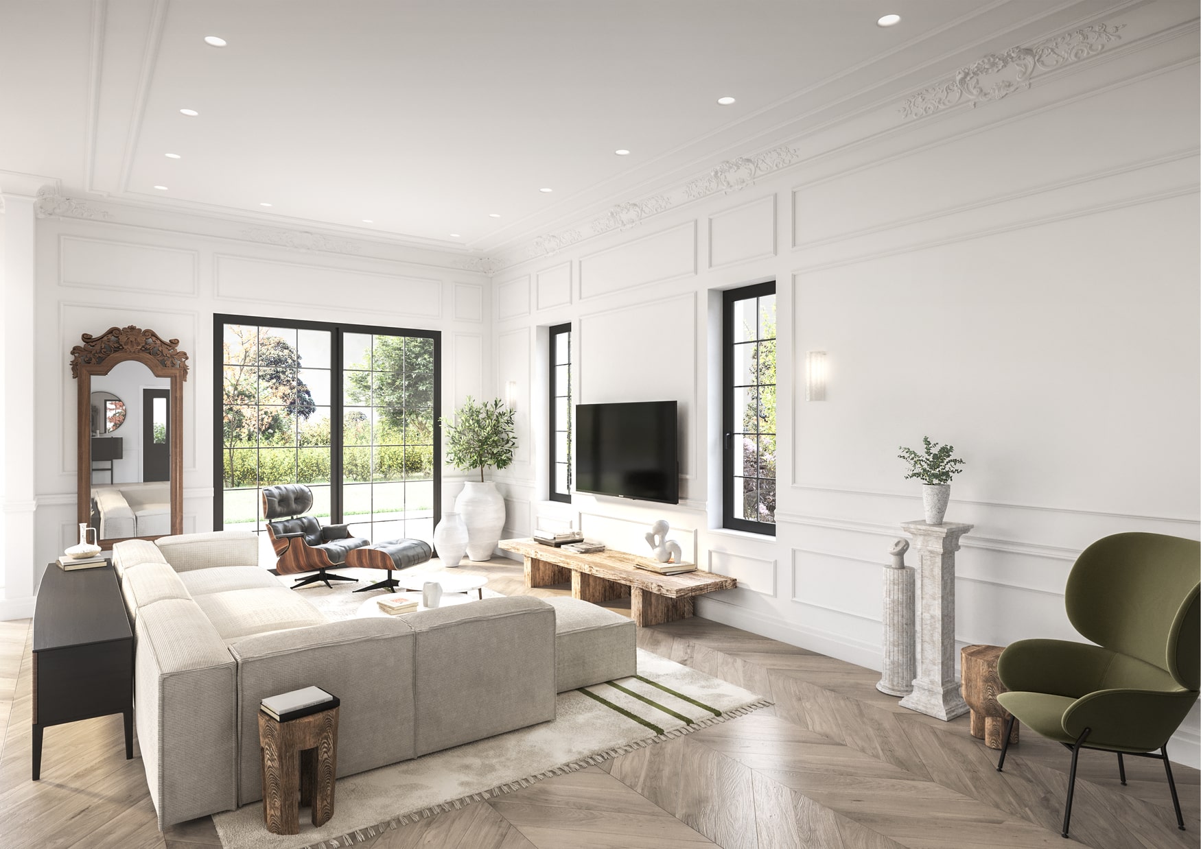 The peaceful and upscale Belgrade neighborhood set the scenery for the Rio townhouse and its sophisticated charm. The project brief was to create a contemporary interior with an old-house character. Following the owner’s love of nature and greenery, we created a constant dialog between inside and outside, paying attention to specially curated views from the interior towards a lovely landscape.