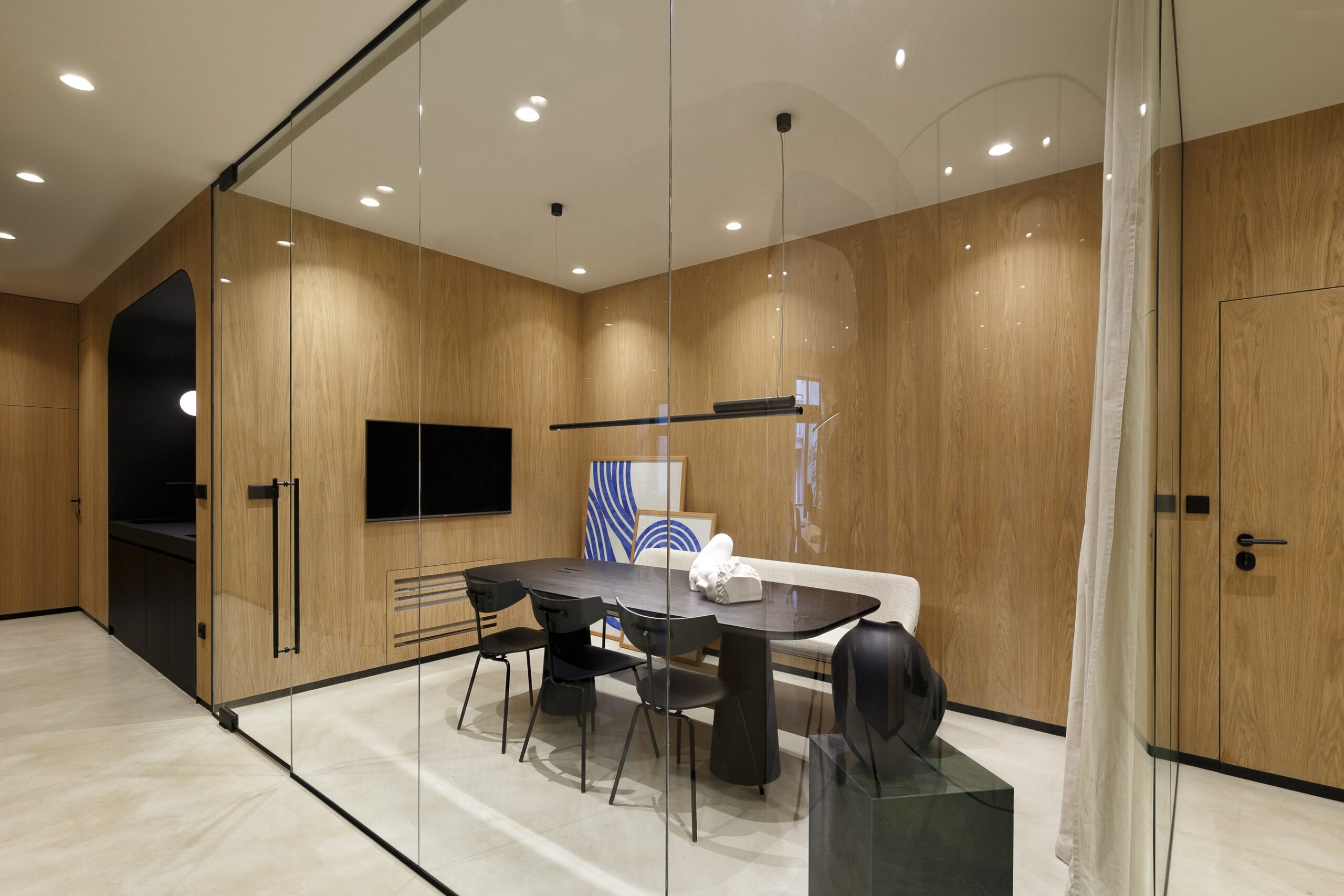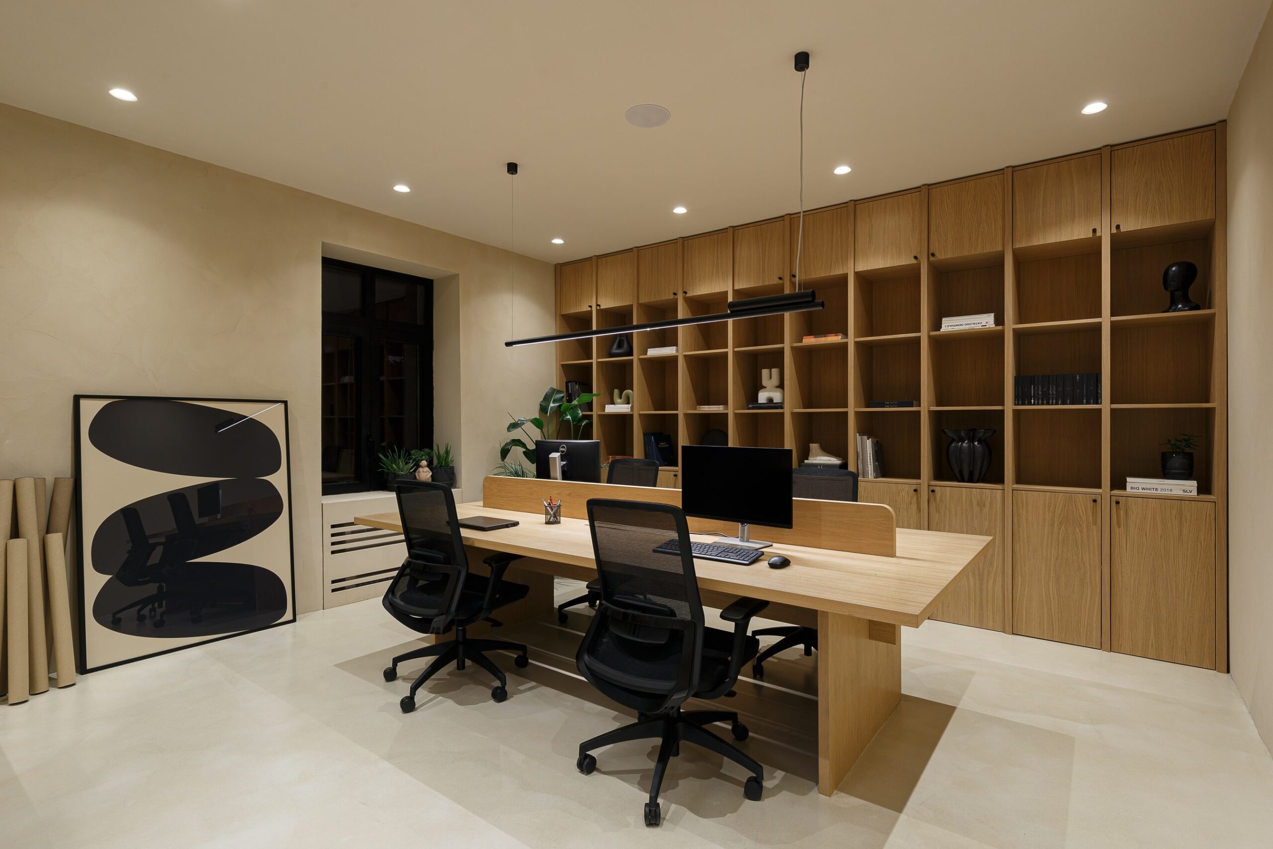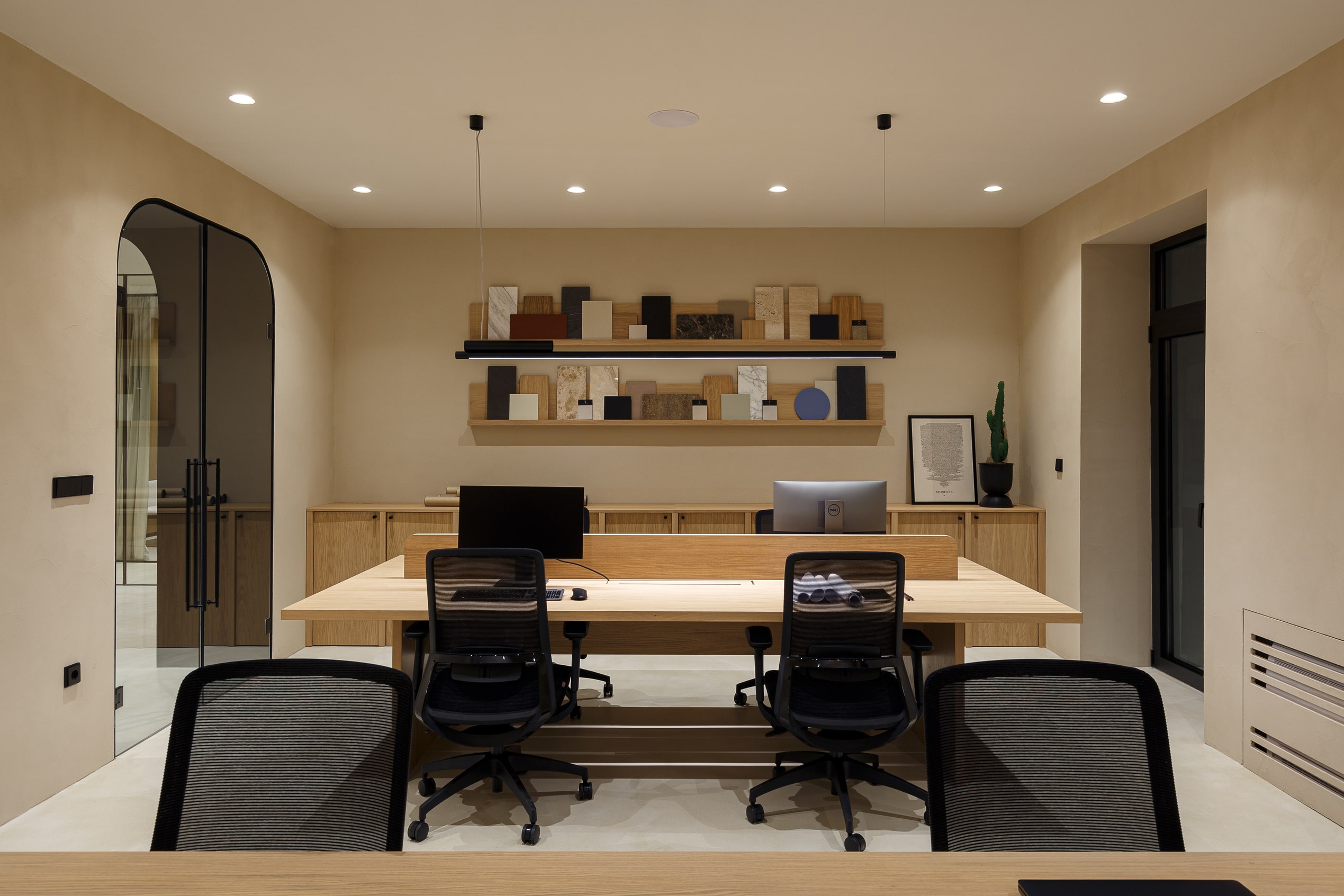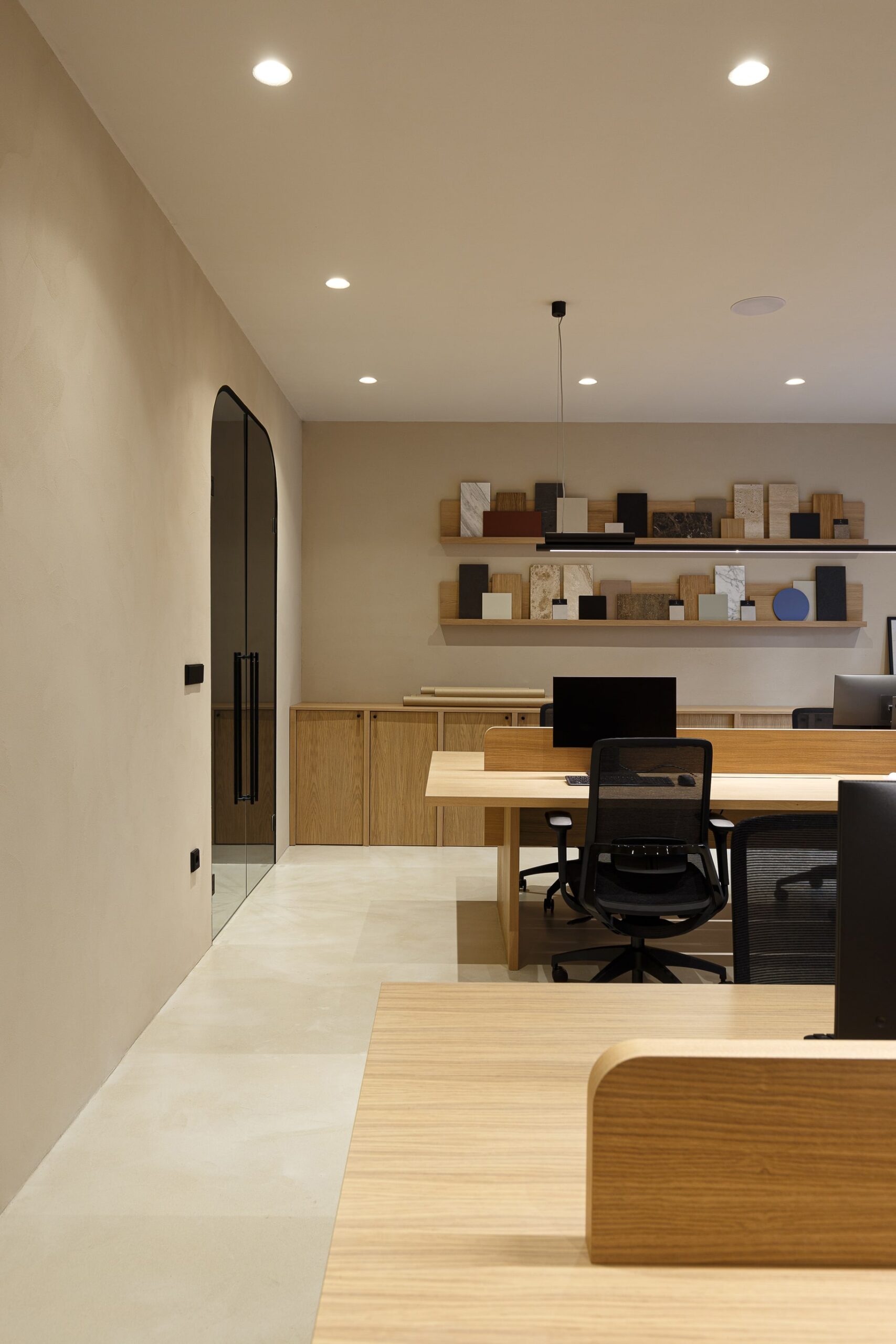 Special thought was put into tactile and sophisticated material and color palette. Throughout the entire space, selection of materials at every turn honor our love of nature. Natural clay is by far the most dominant material within the office, followed by wood, stone and marble. The bold black elements shaped the entire design narrative. The outcome is a contemporary and highly personalized working space that is a true reflection of our unique style.