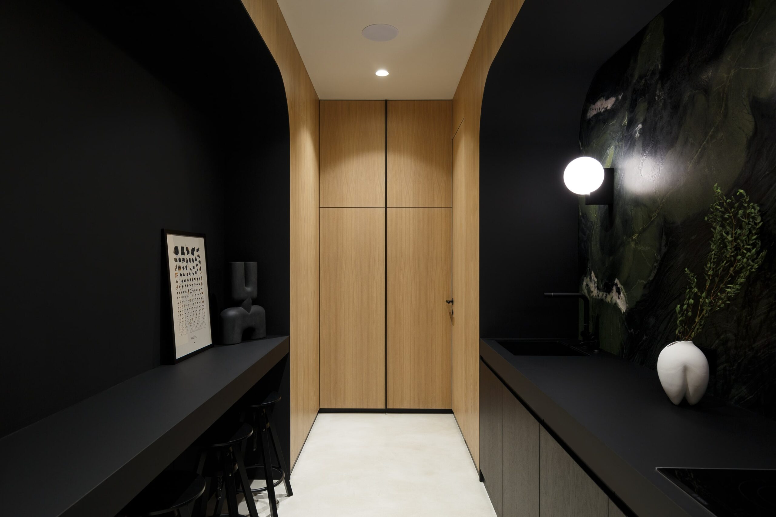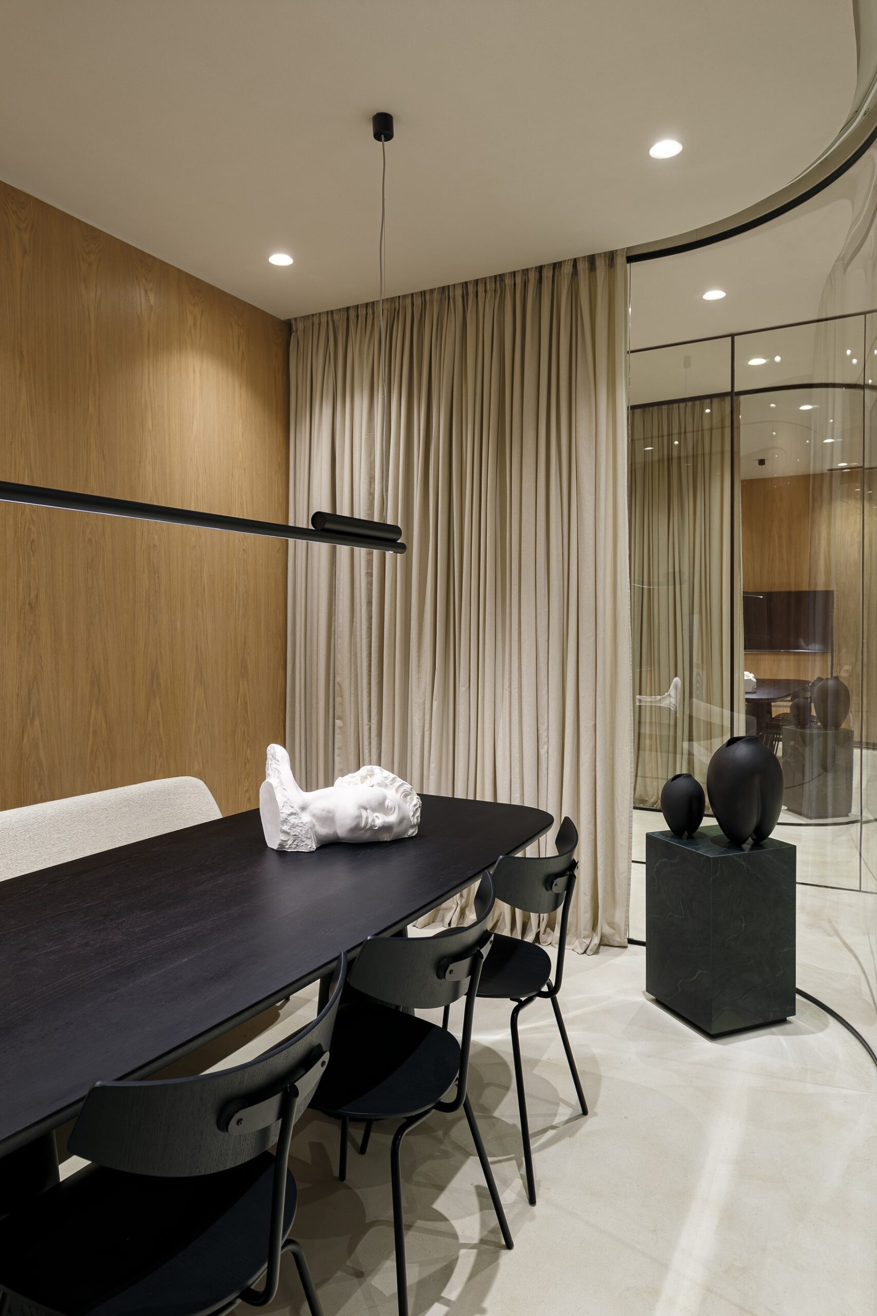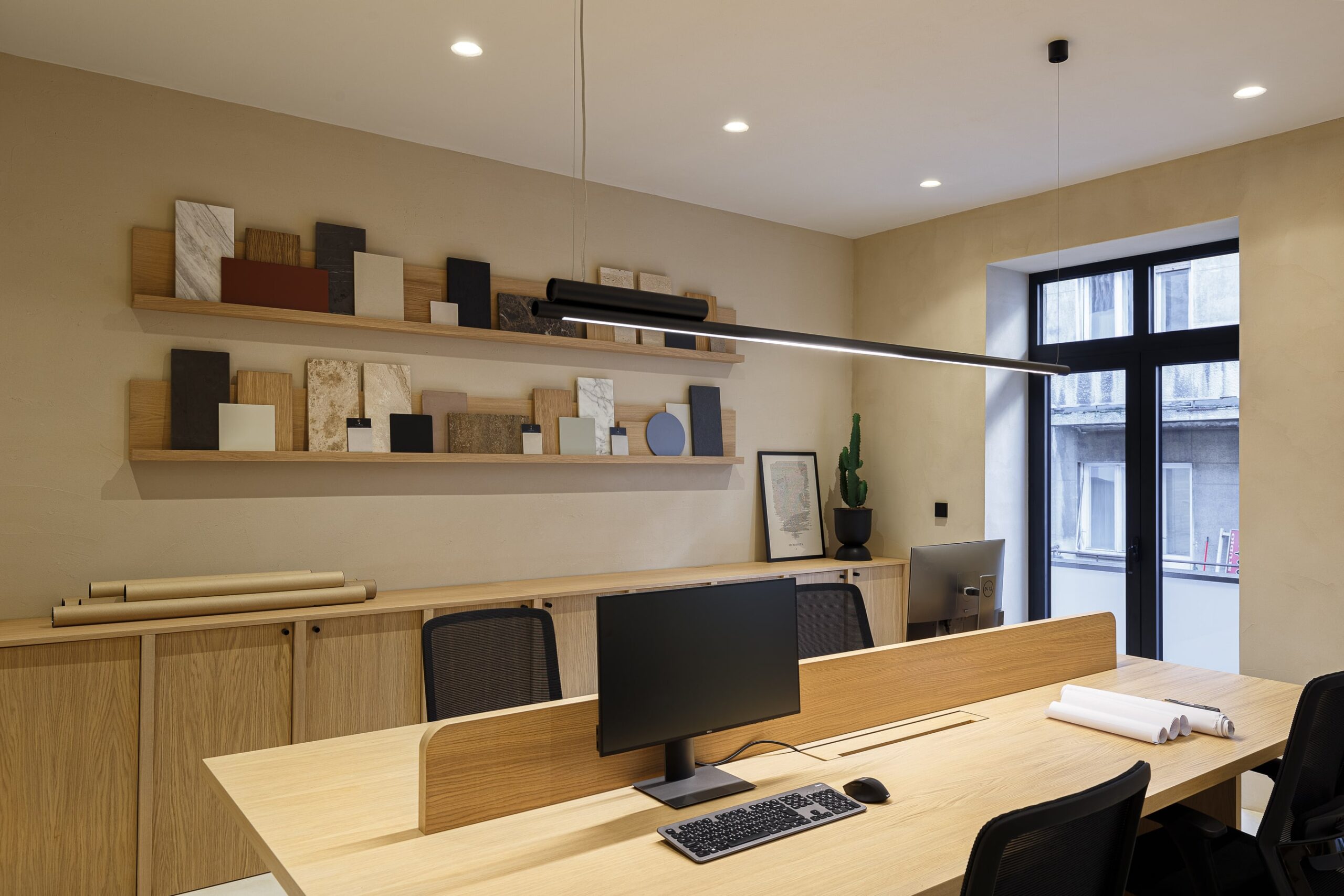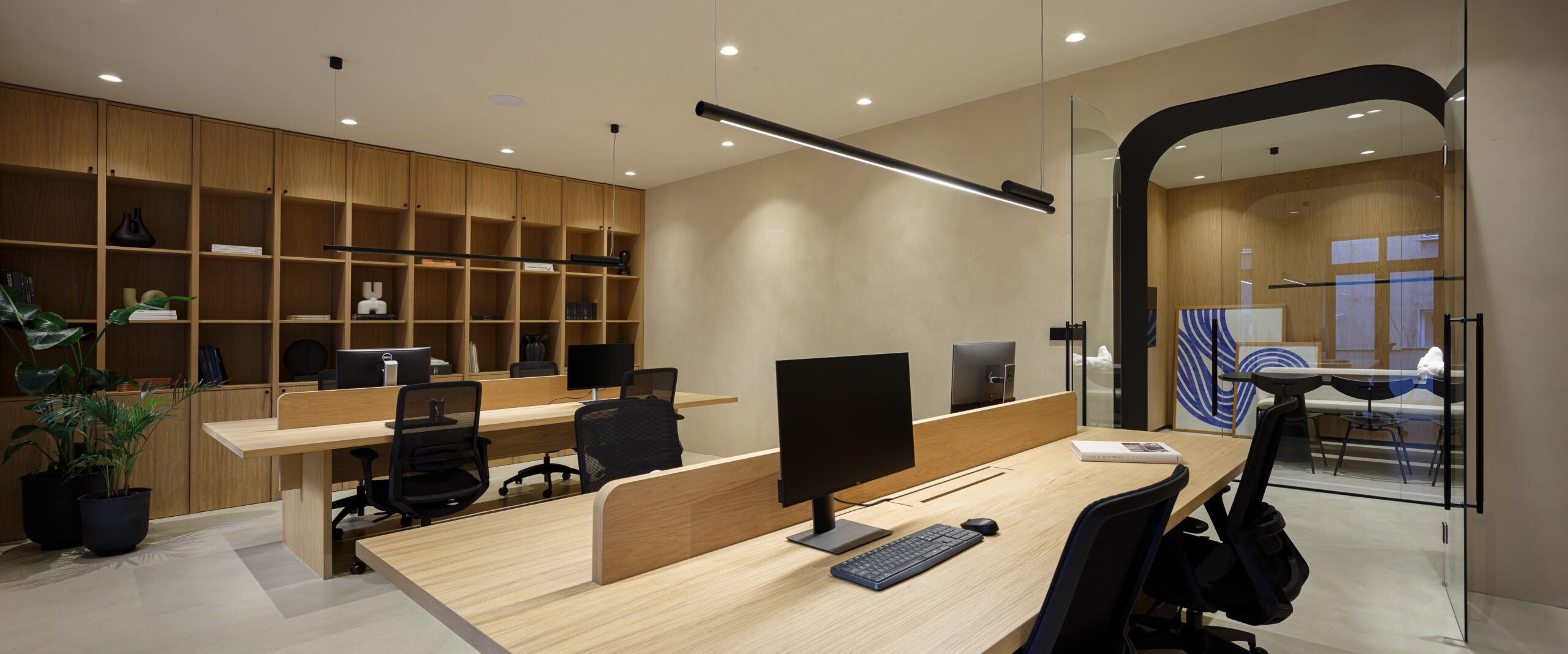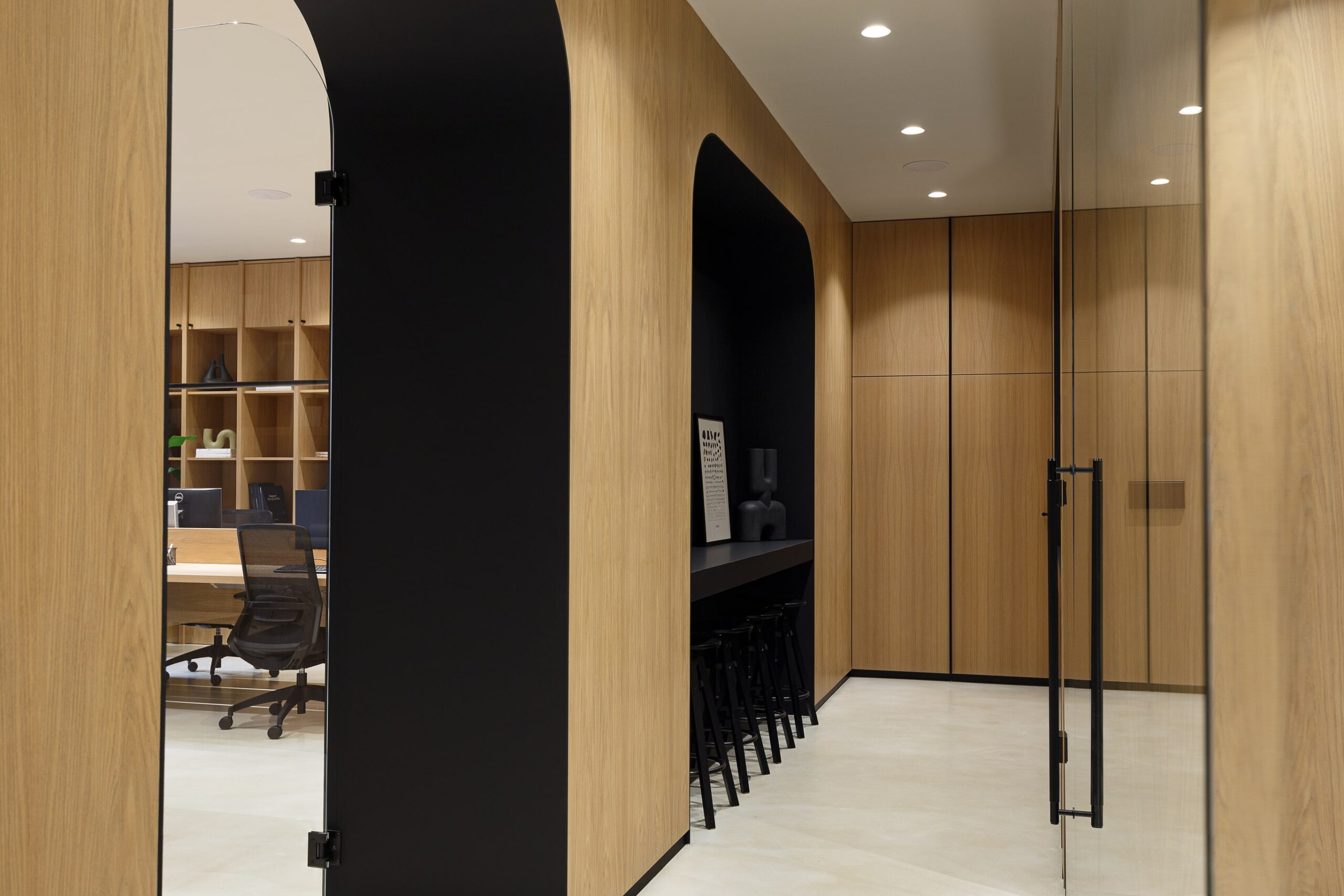 Special thought was put into tactile and sophisticated material and color palette. Throughout the entire space, selection of materials at every turn honor our love of nature. Natural clay is by far the most dominant material within the office, followed by wood, stone and marble. The bold black elements shaped the entire design narrative. The outcome is a contemporary and highly personalized working space that is a true reflection of our unique style.