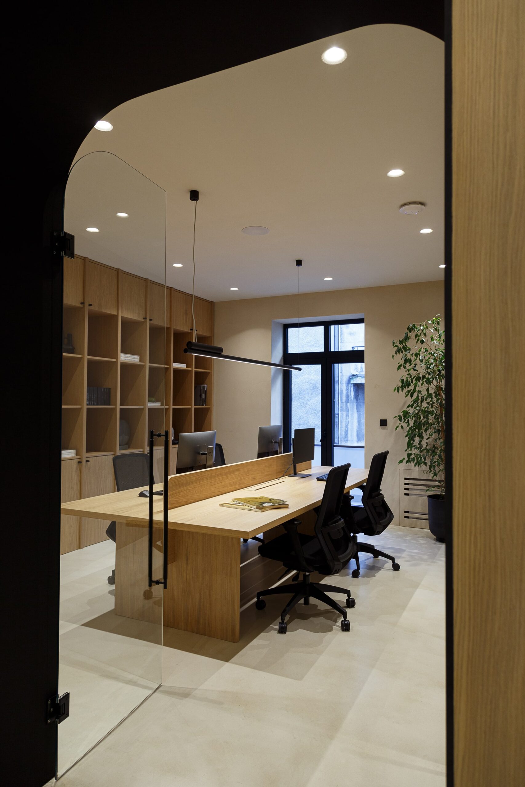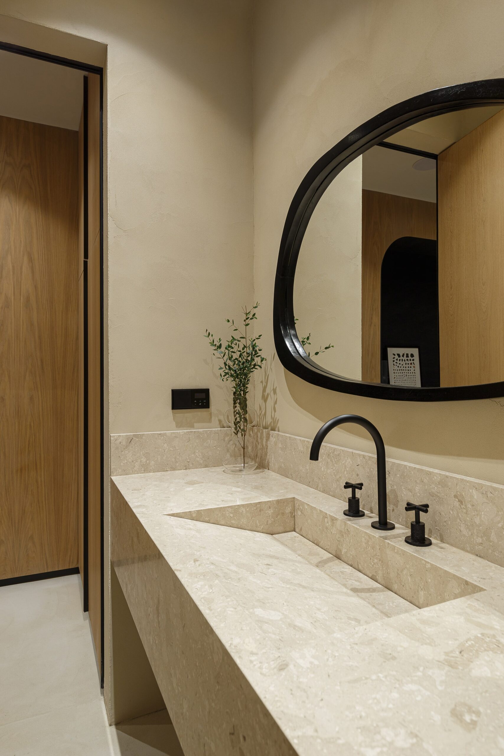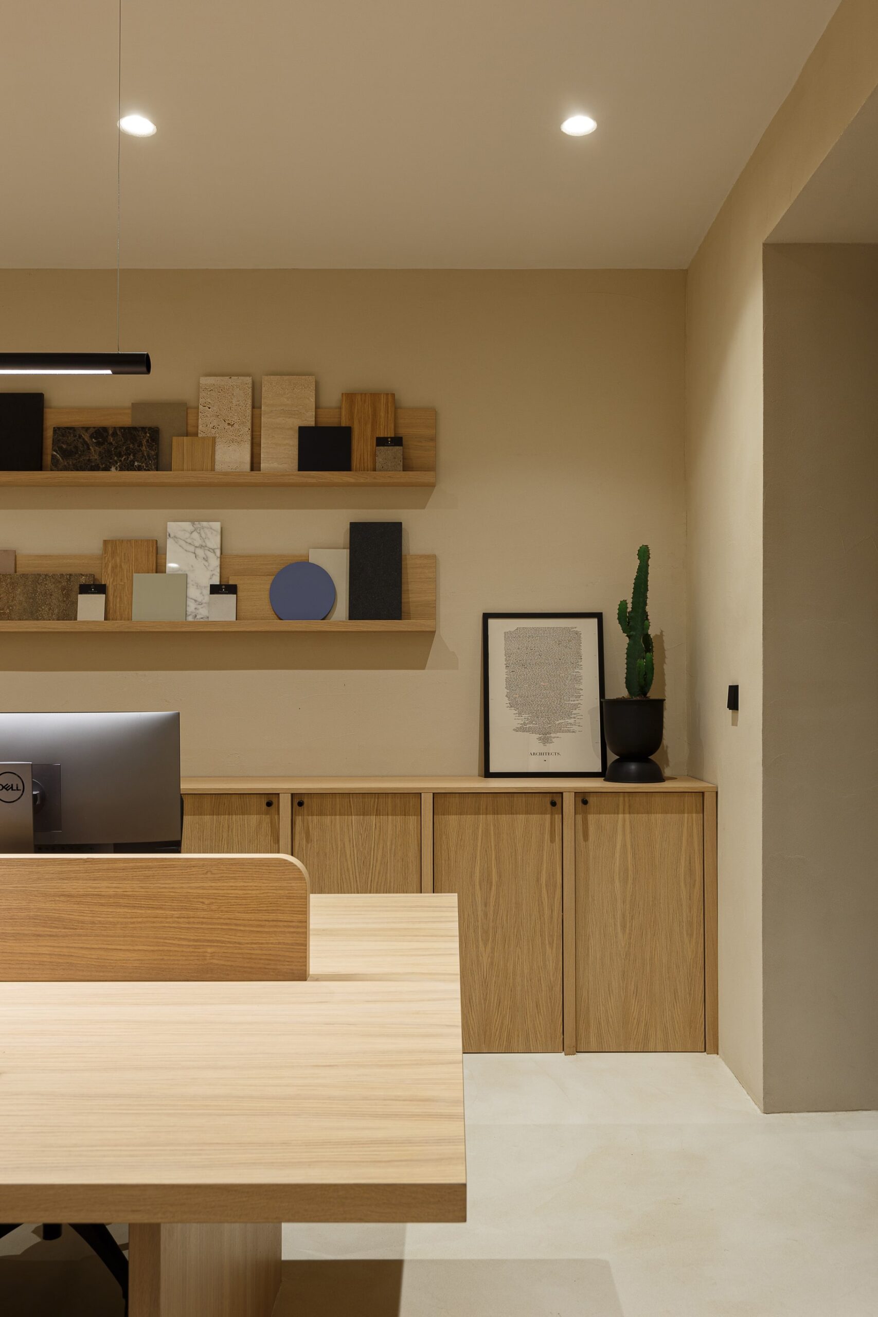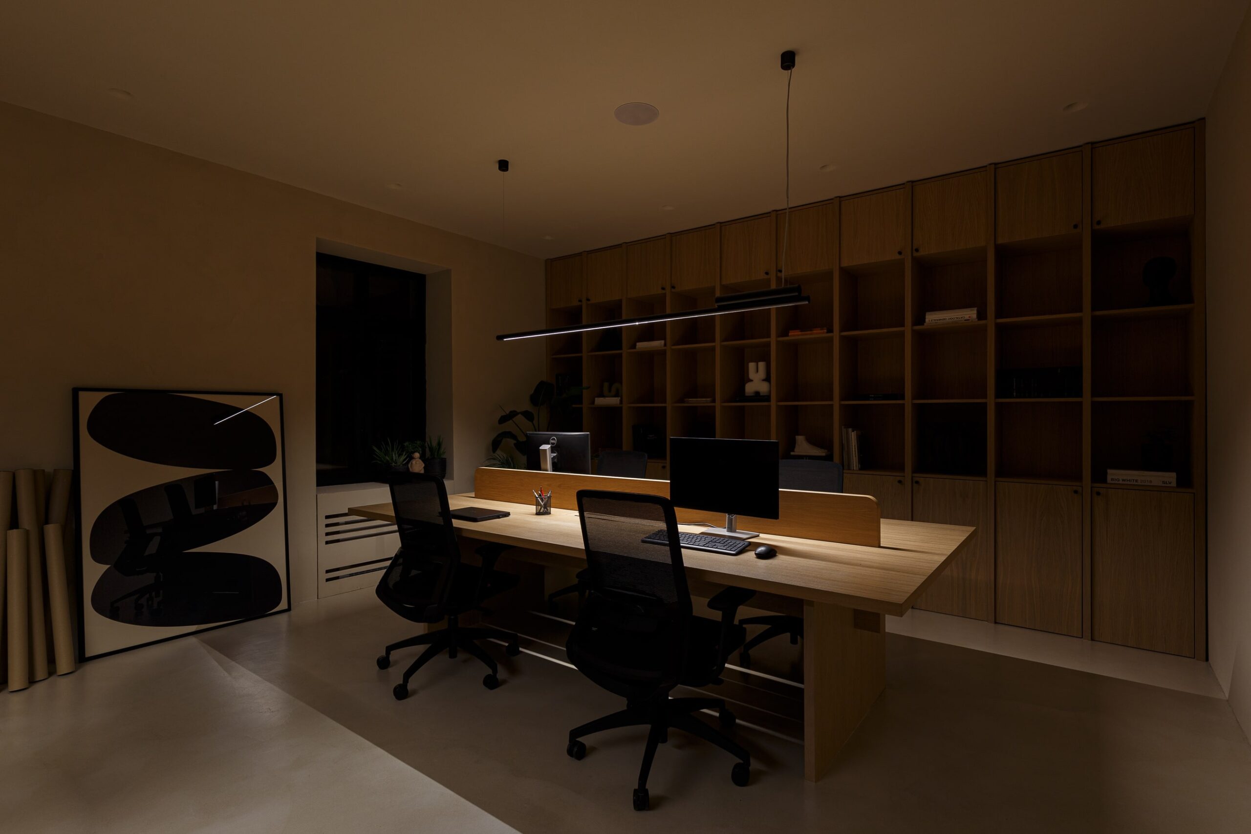 Special thought was put into tactile and sophisticated material and color palette. Throughout the entire space, selection of materials at every turn honor our love of nature. Natural clay is by far the most dominant material within the office, followed by wood, stone and marble. The bold black elements shaped the entire design narrative. The outcome is a contemporary and highly personalized working space that is a true reflection of our unique style.