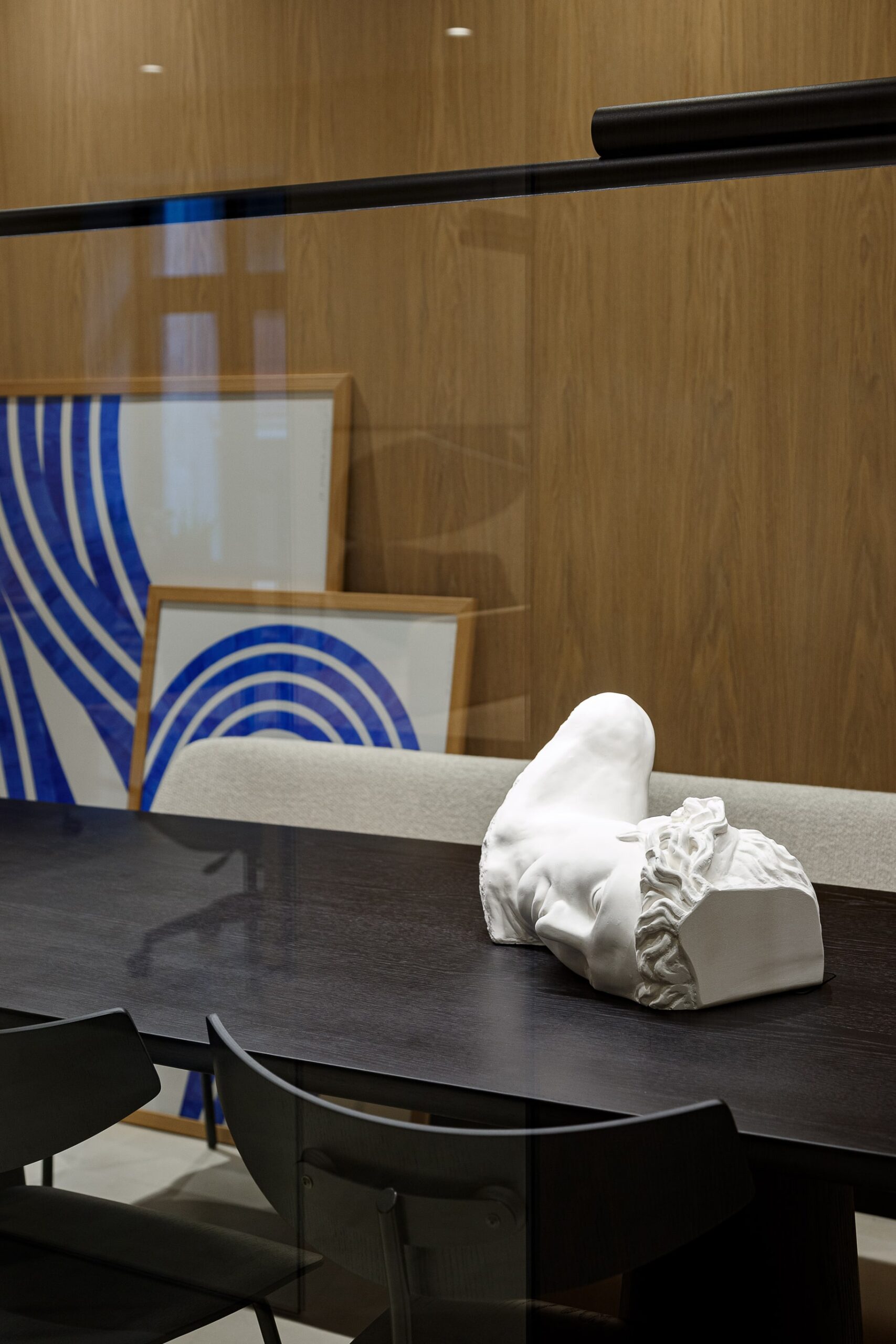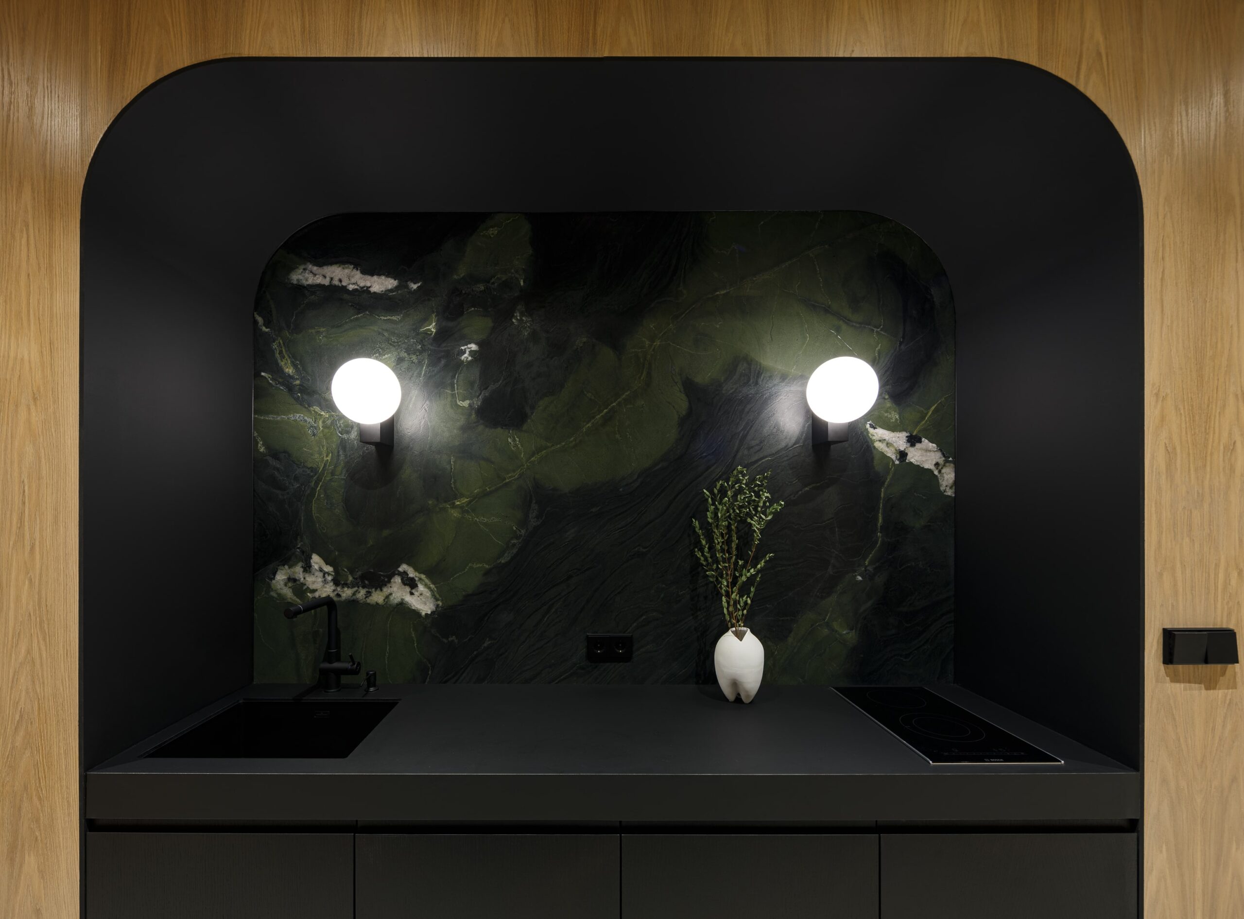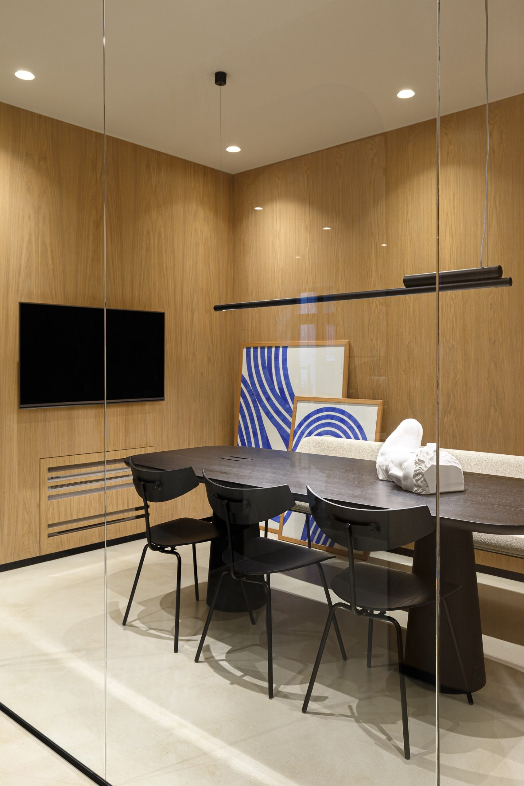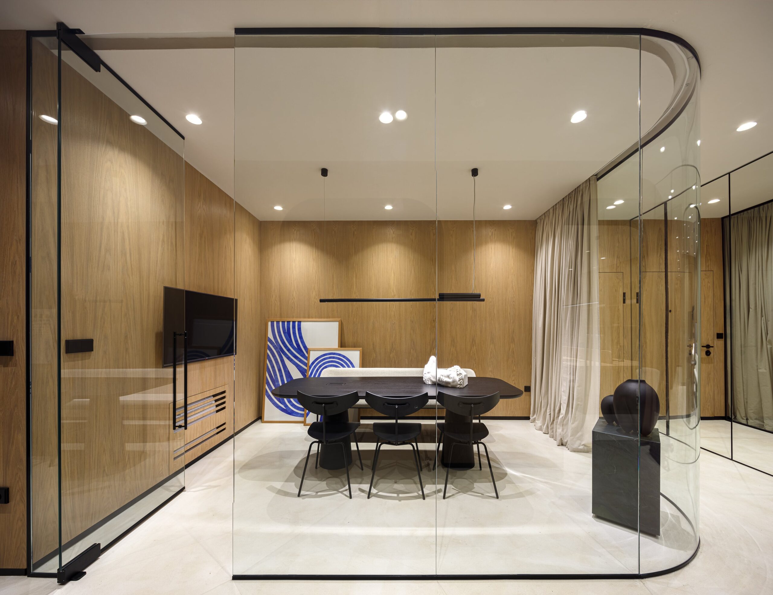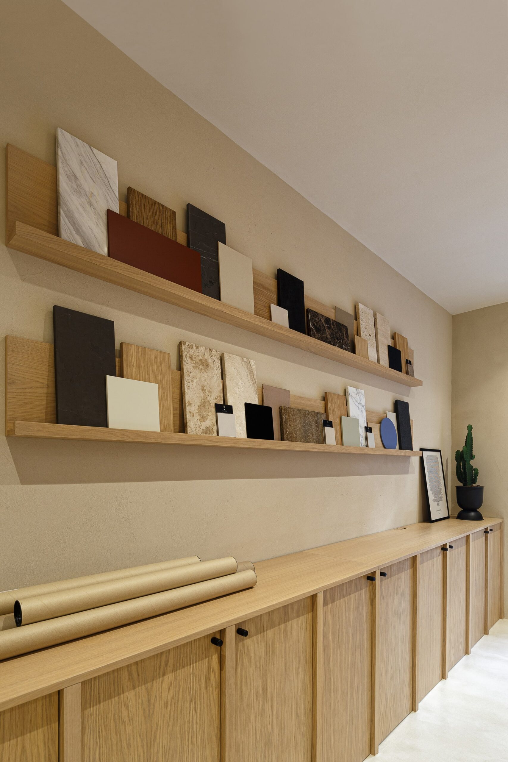 Special thought was put into tactile and sophisticated material and color palette. Throughout the entire space, selection of materials at every turn honor our love of nature. Natural clay is by far the most dominant material within the office, followed by wood, stone and marble. The bold black elements shaped the entire design narrative. The outcome is a contemporary and highly personalized working space that is a true reflection of our unique style.