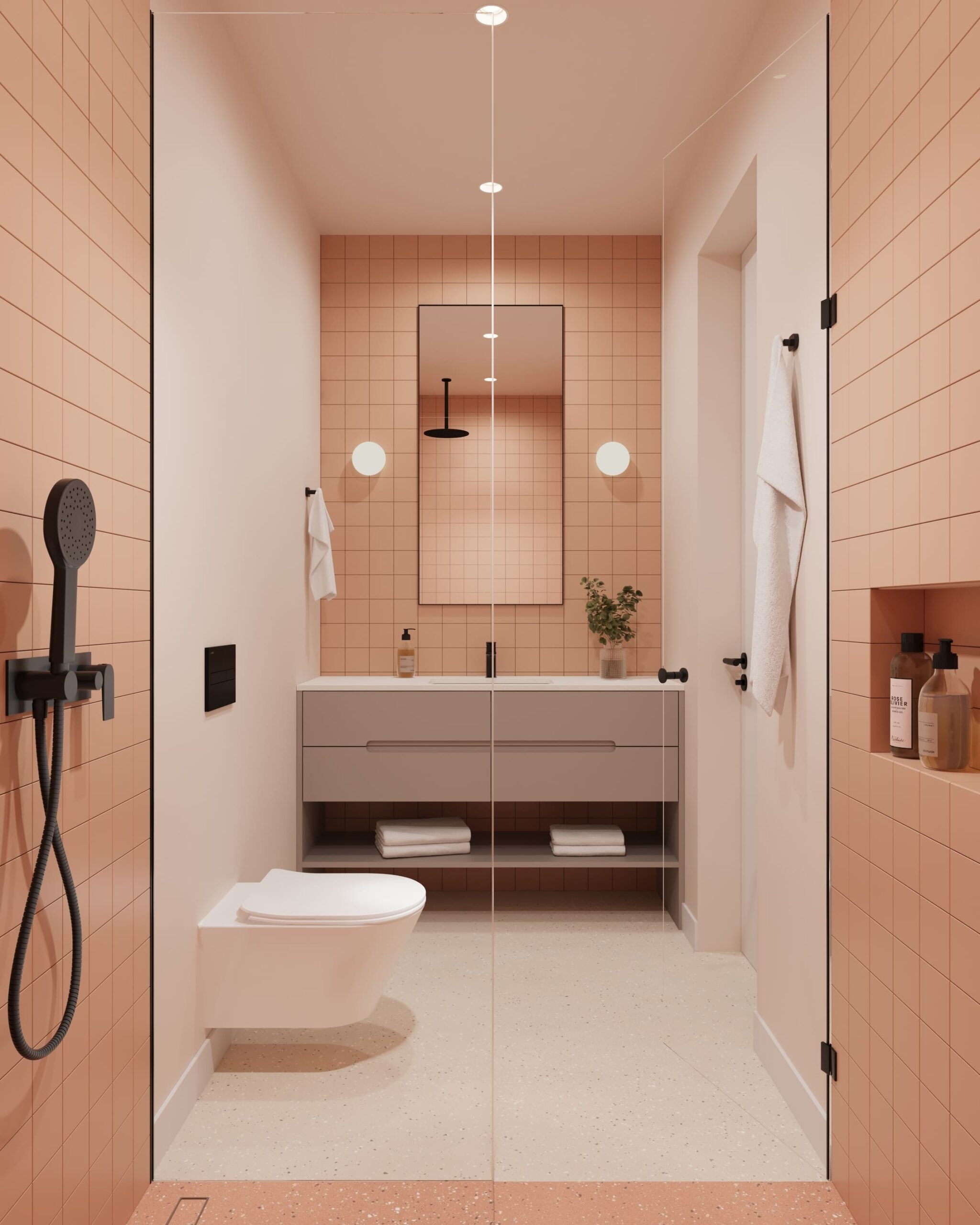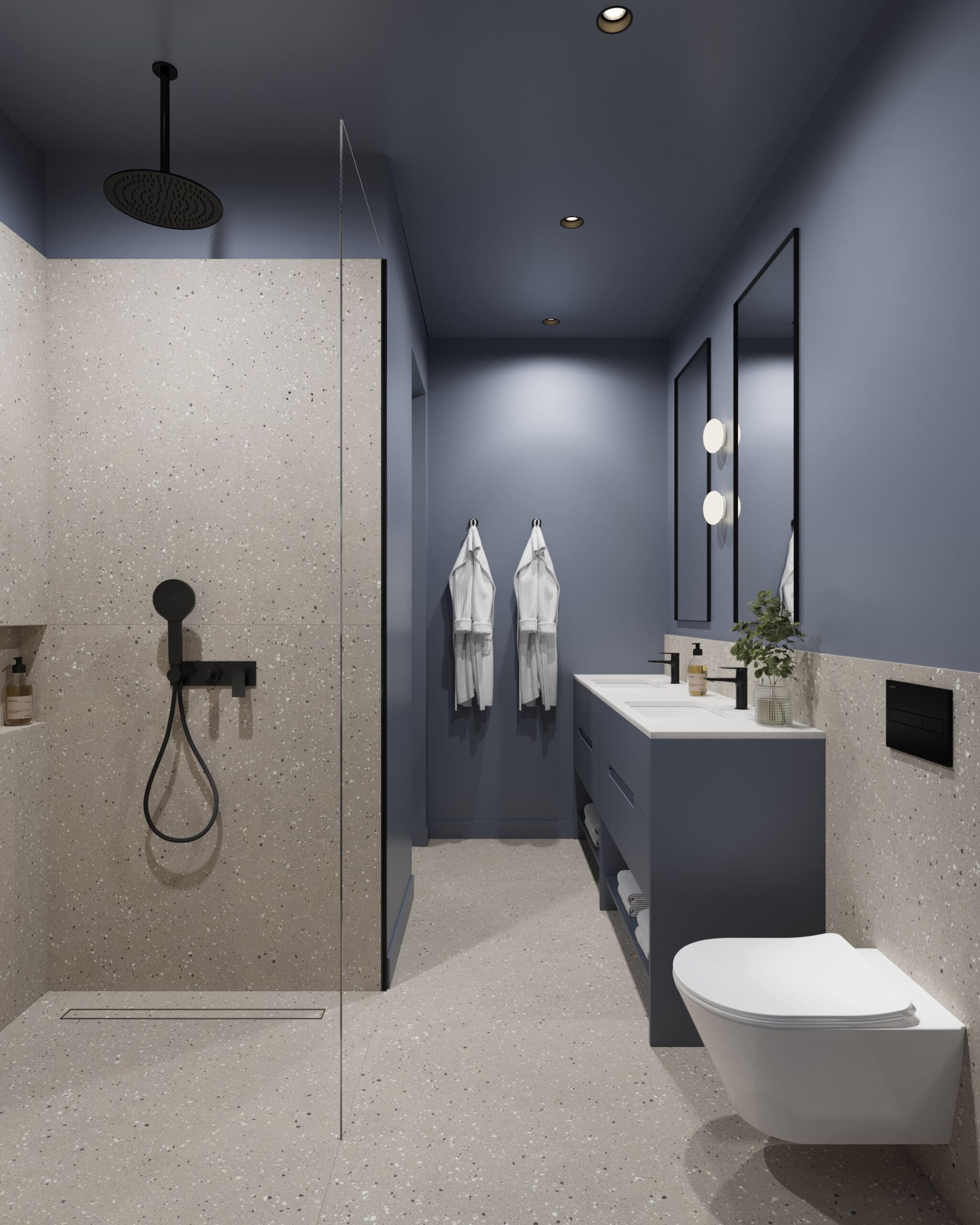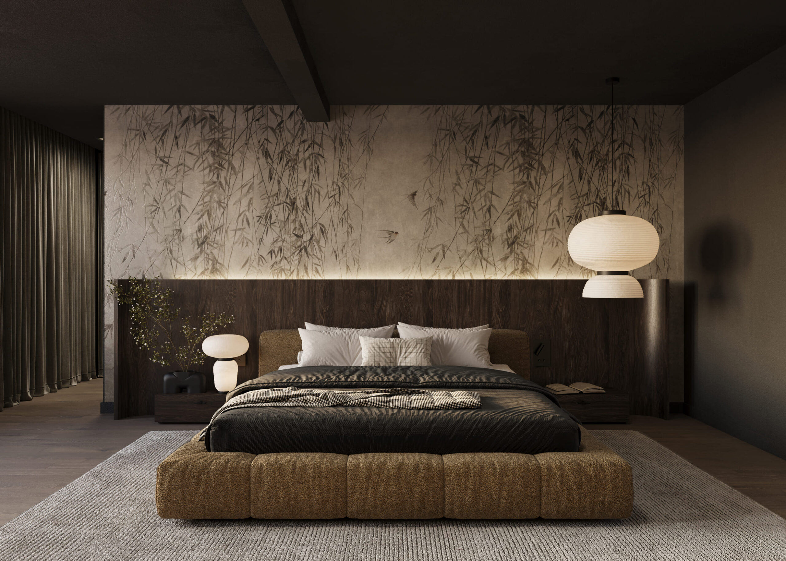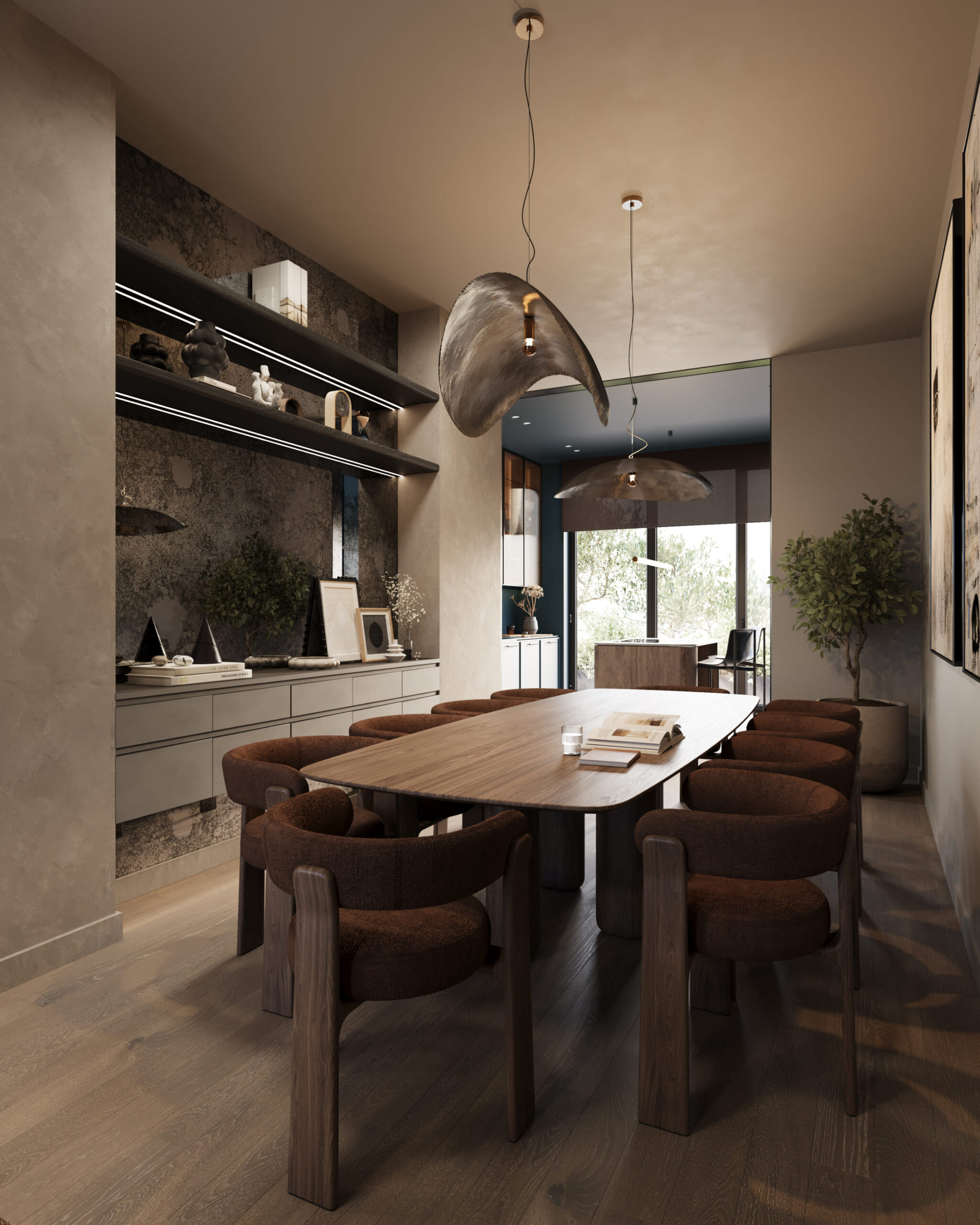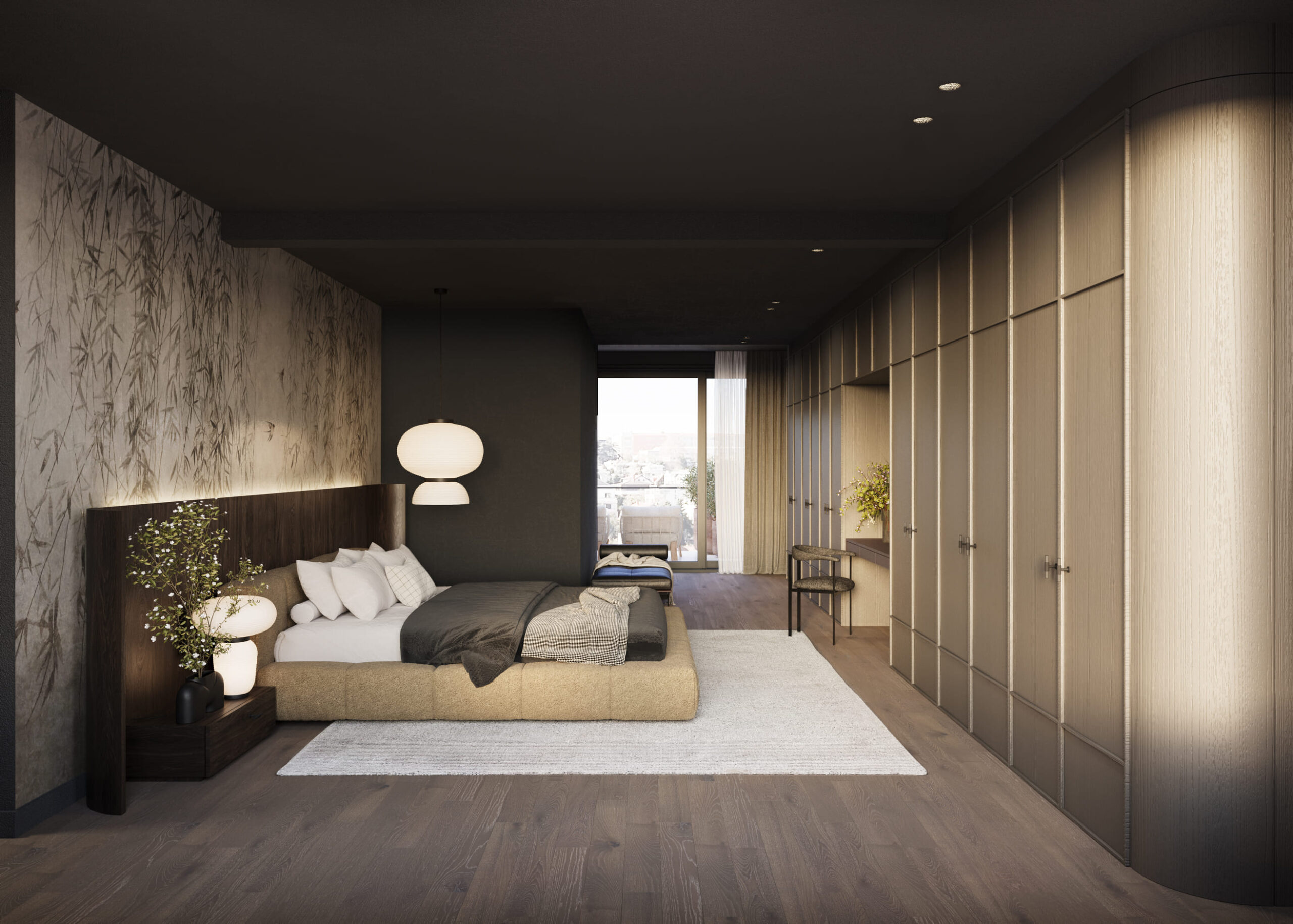 The top floor is an elegant escape for the parents, designed as a seamless open-concept suite. The master bathroom, rich in textures and deep tones, offers a serene sanctuary—an ideal space for relaxation and rejuvenation.