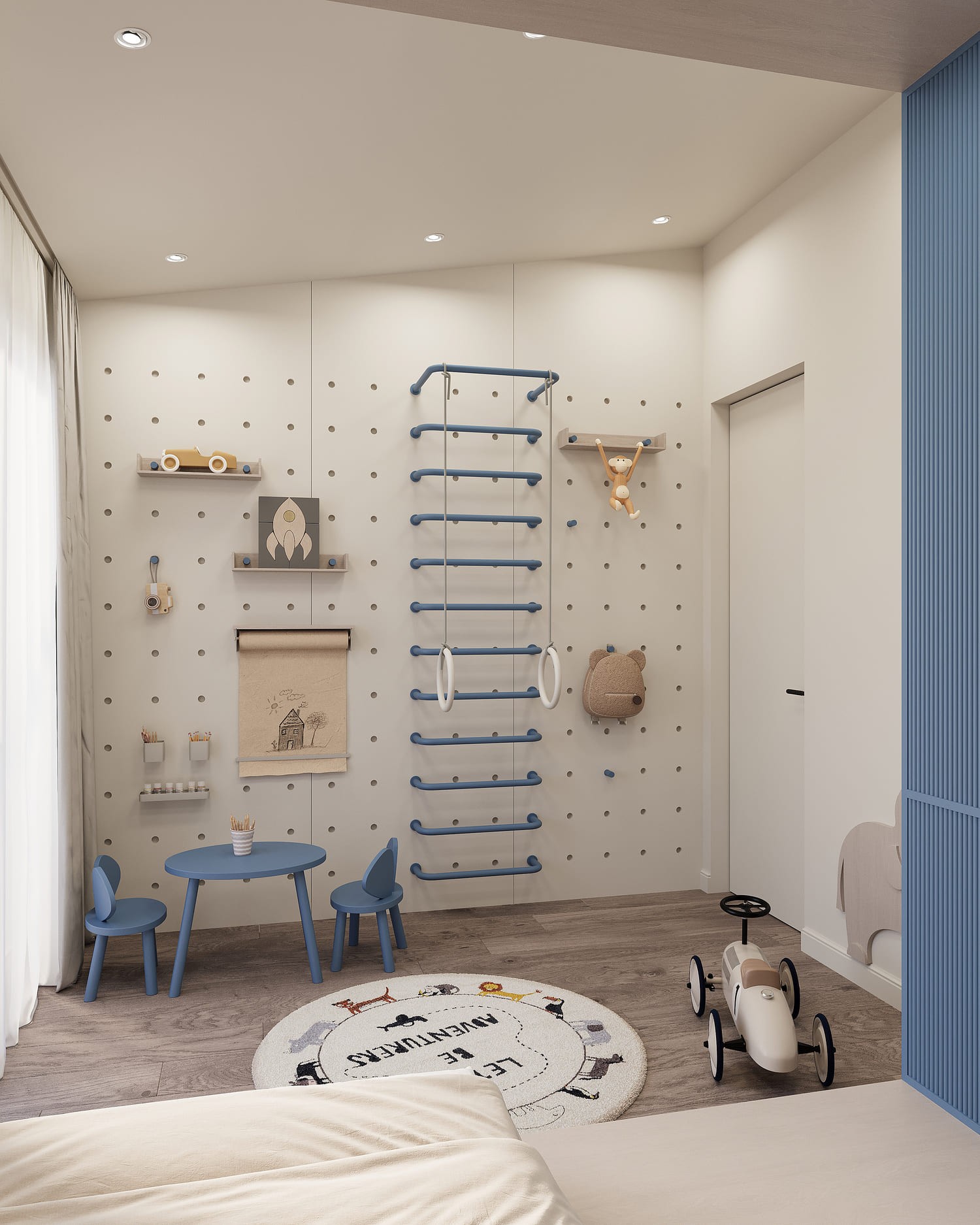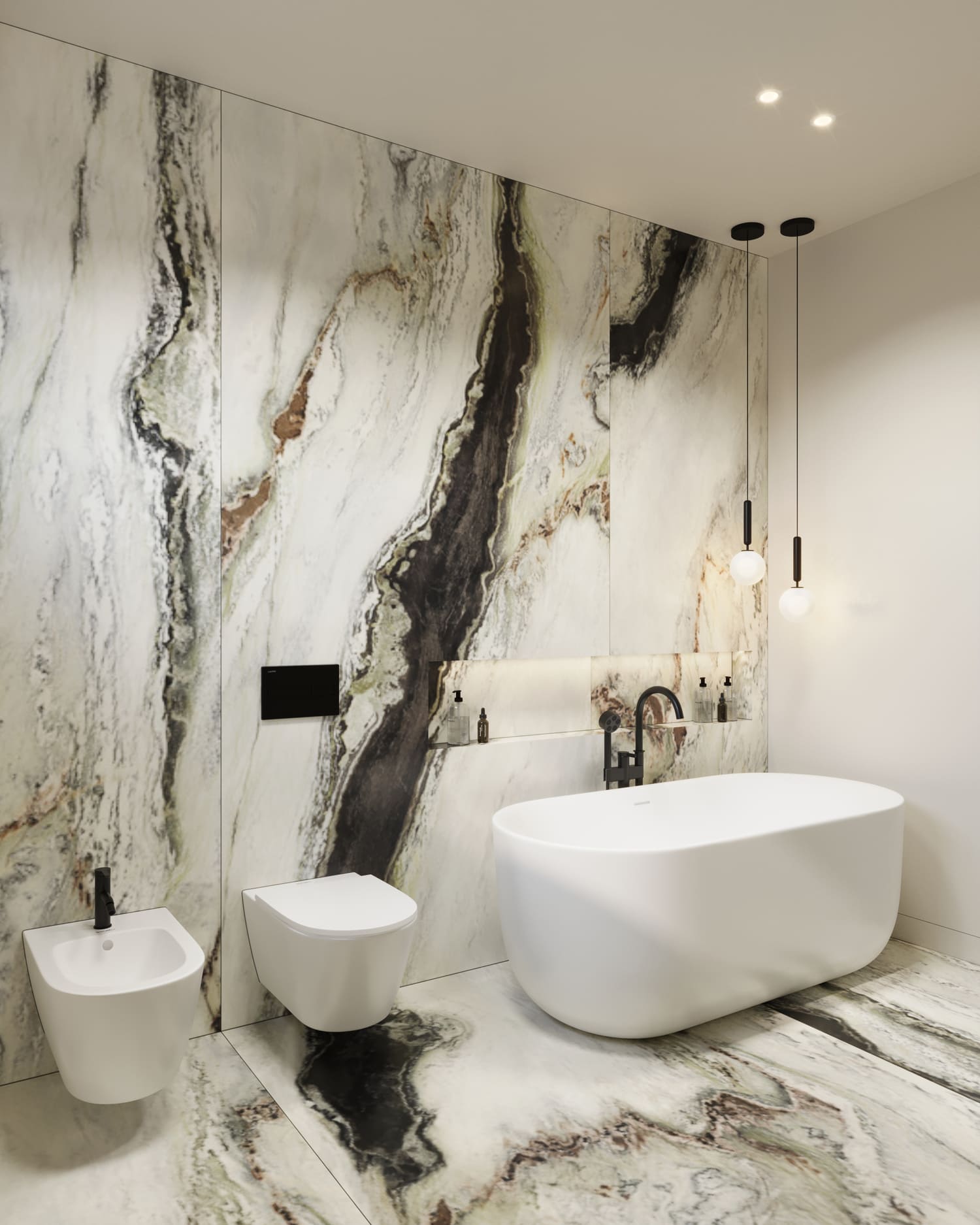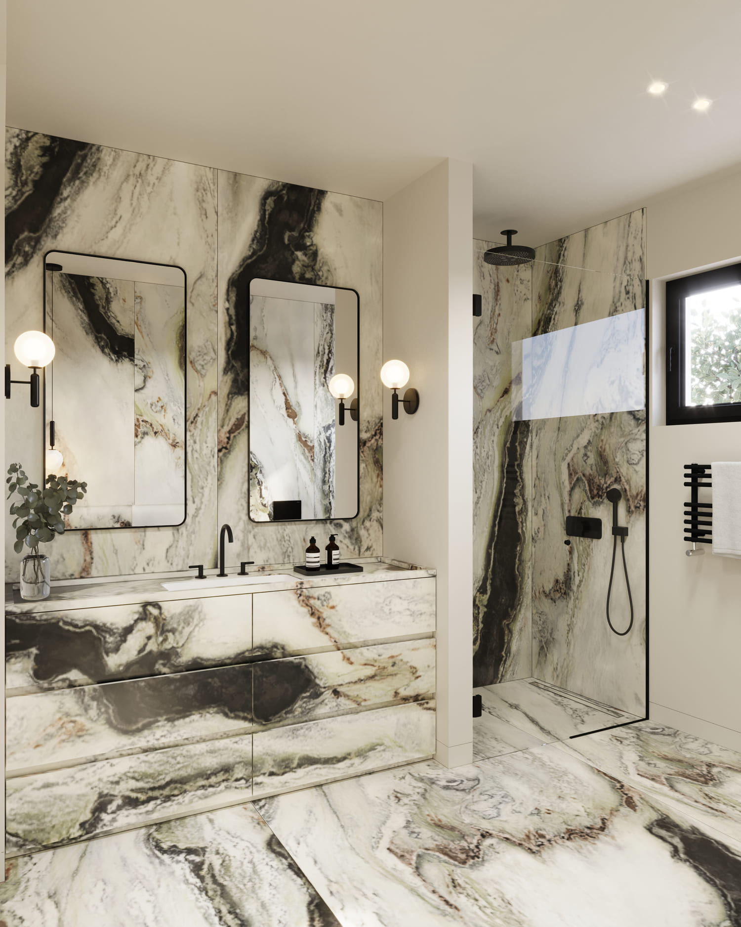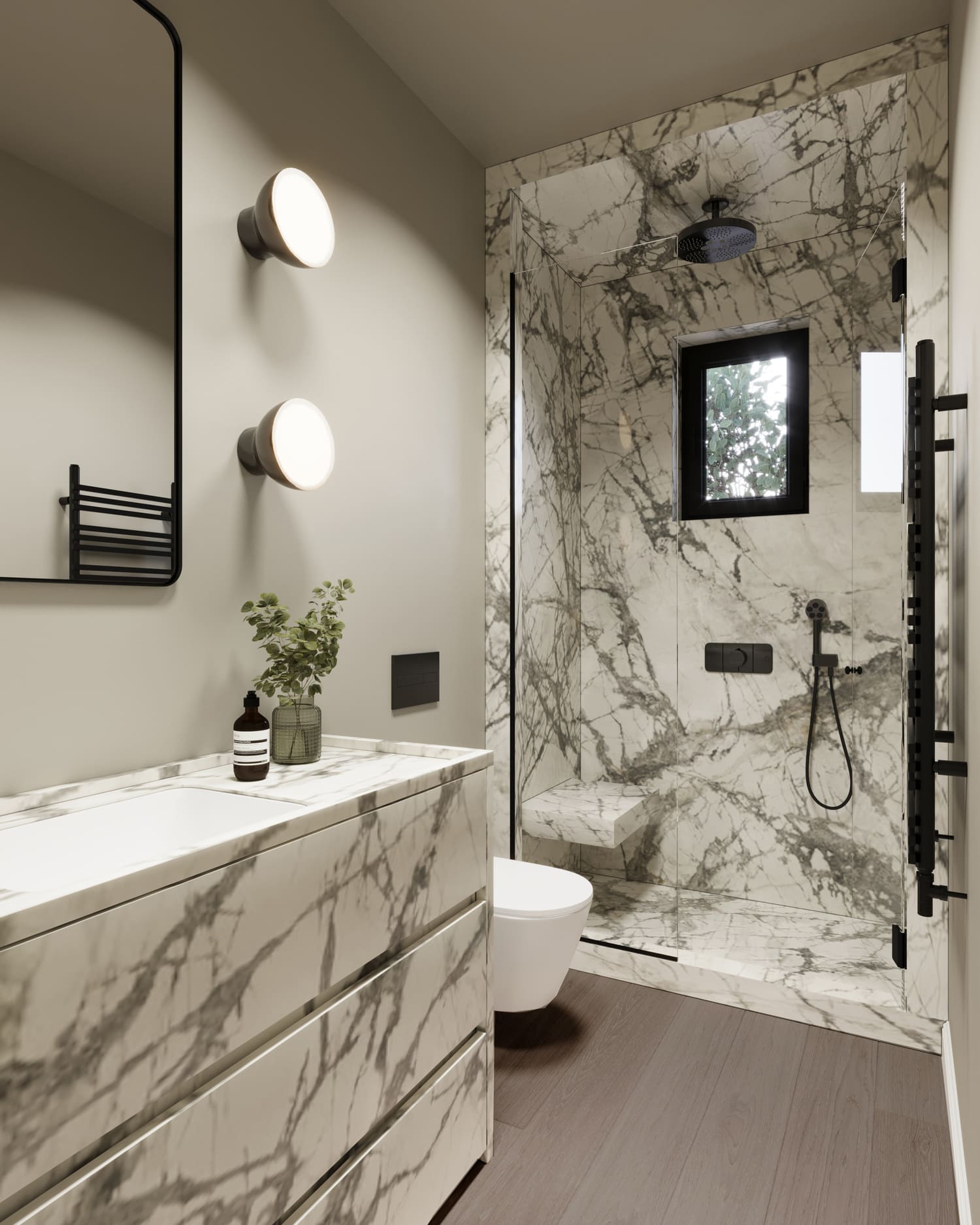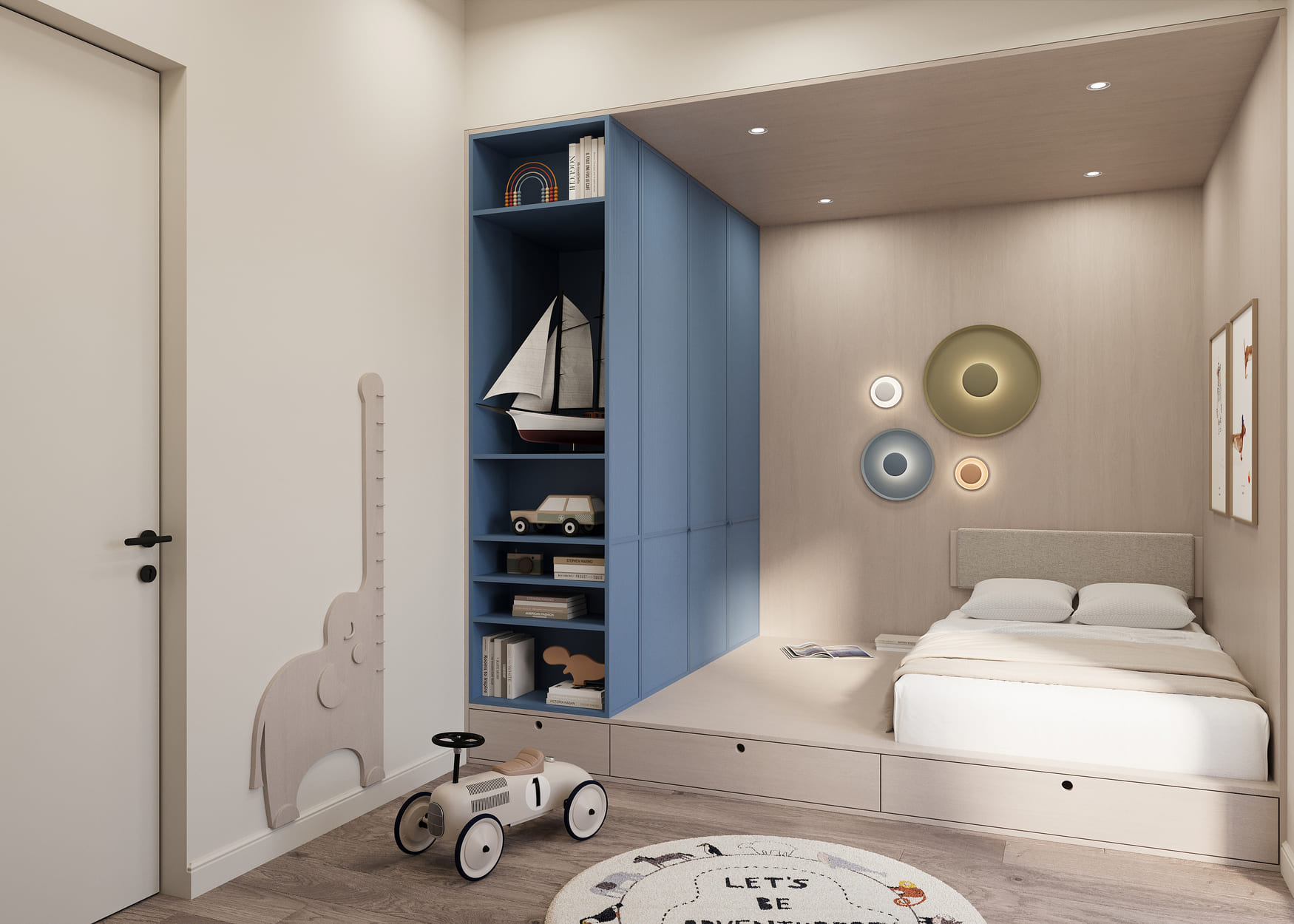 The guest room is warm and versatile, while the playful child’s room adapts to evolving needs. The master suite, with its dual closets and serene design, offers a restful escape, contrasting with the dramatic Panda Marble-clad bathroom—a true showstopper.